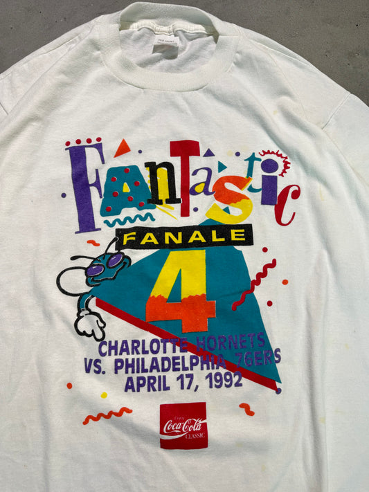 1992 Charlotte Hornets x Coca-Cola Fantastic Fanale 4 vs. Philadelphia 76ers Vintage White Hugo NBA Tee (XL)