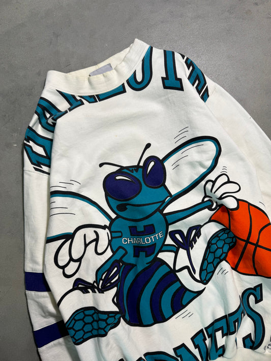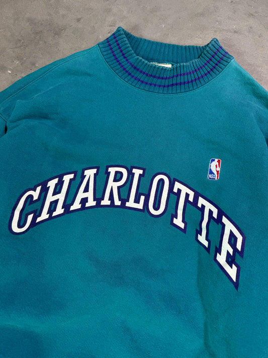 90’s Charlotte Hornets Vintage Arch Block Letter Spellout Logo 7 NBA Crewneck (XL)