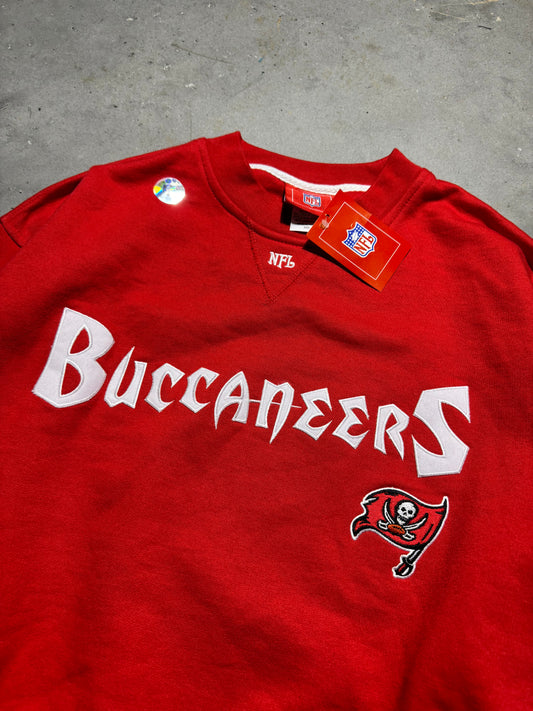 00’s Tampa Bay Buccaneers Vintage Red Embroidered Spellout NFL Crewneck - Deadstock (Large)