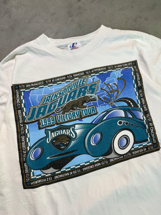1999 Jacksonville Jaguars Vintage White Logo Athletic Victory Tour Prowler Logo NFL Tee (XL)