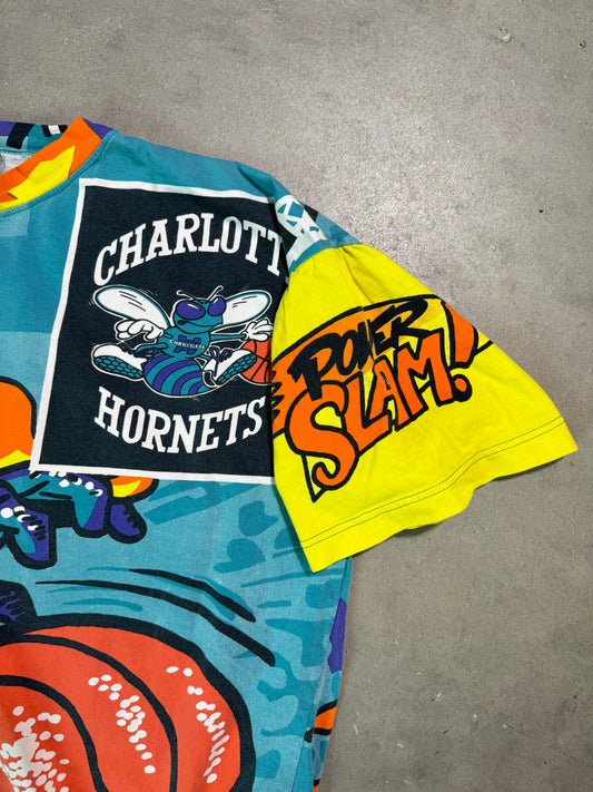 90’s Charlotte Hornets x Magic Johnston Tees Vintage Flaming Dunk All Over Print NBA Tee (XL)