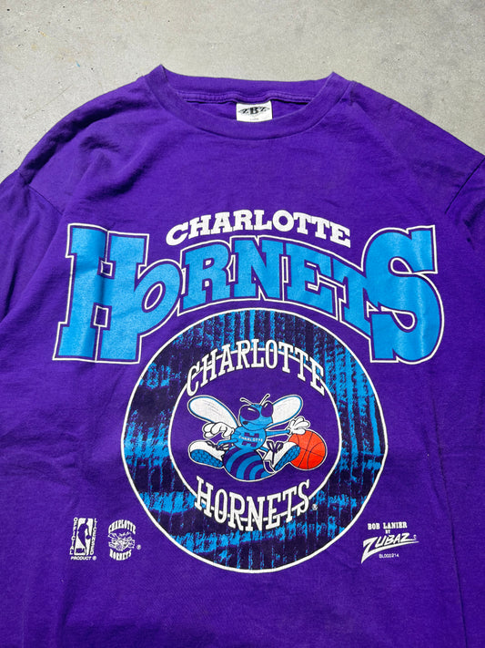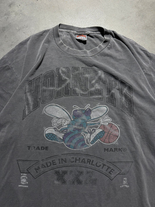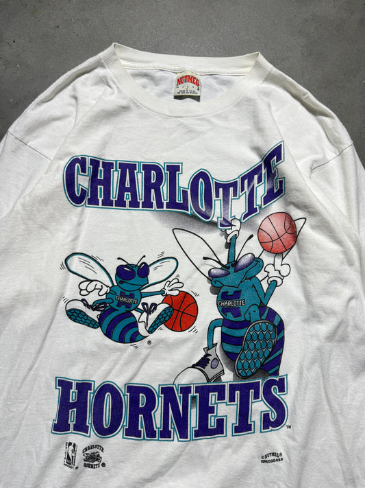 90’s Charlotte Hornets Vintage Nutmeg Mills Overdyed NBA Big Logo Tee (XL)