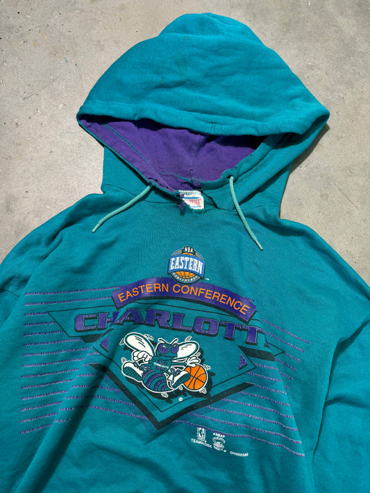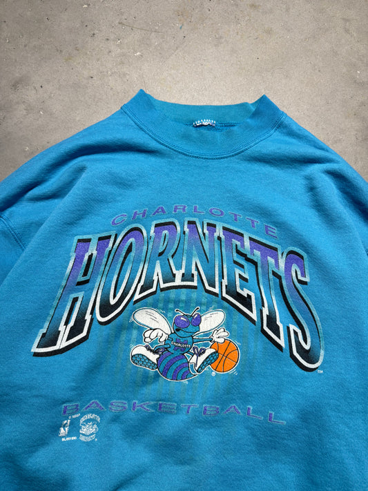 90’s Charlotte Hornets Vintage Teal Distressed Salem Sportswear NBA Crewneck (XL)