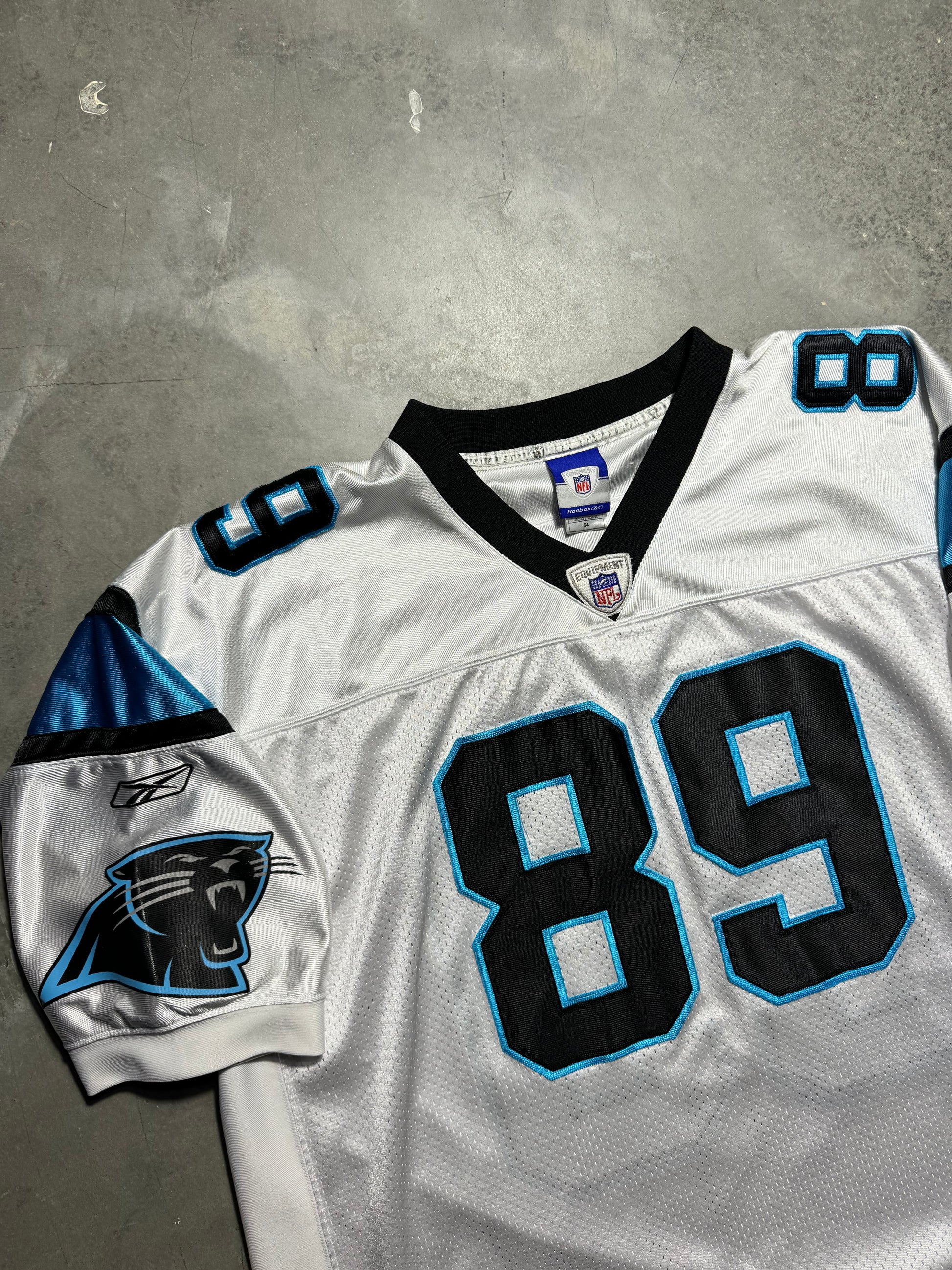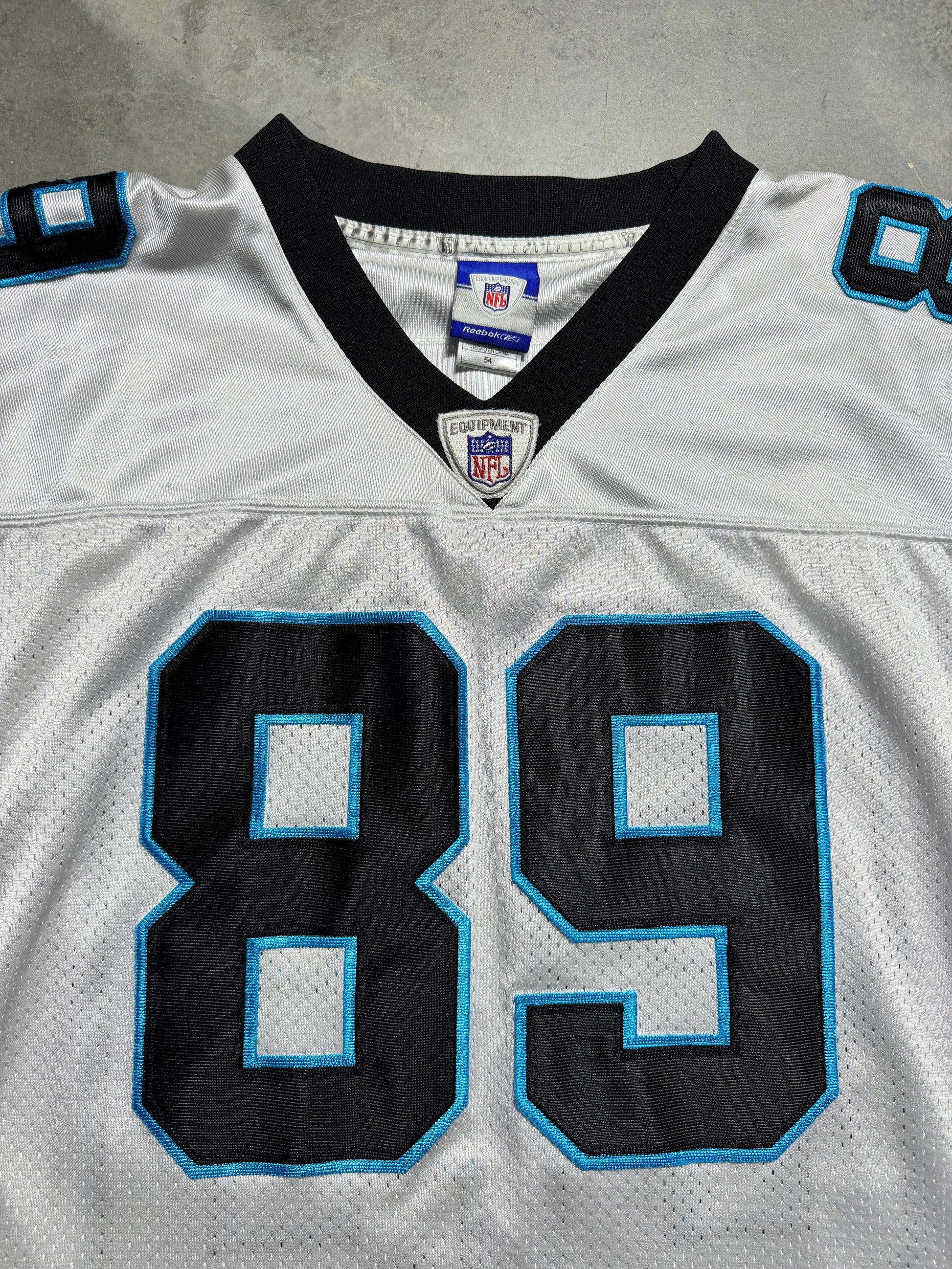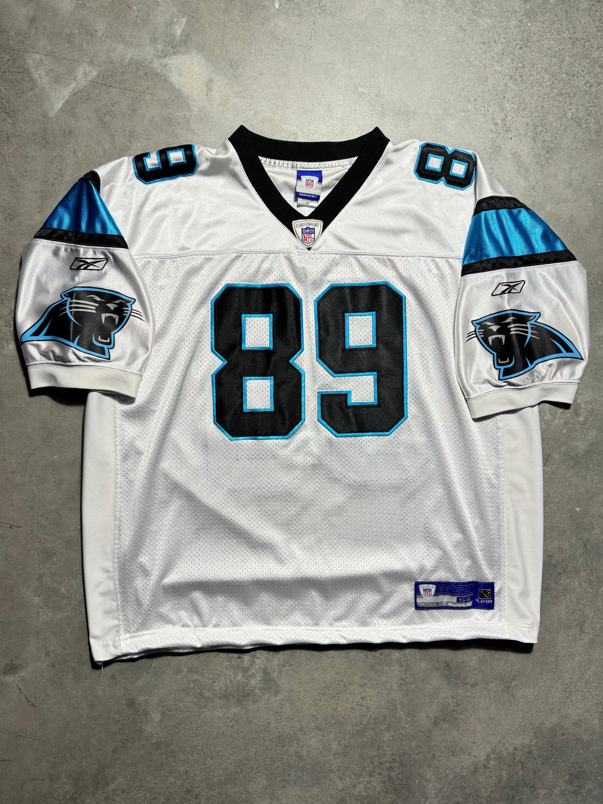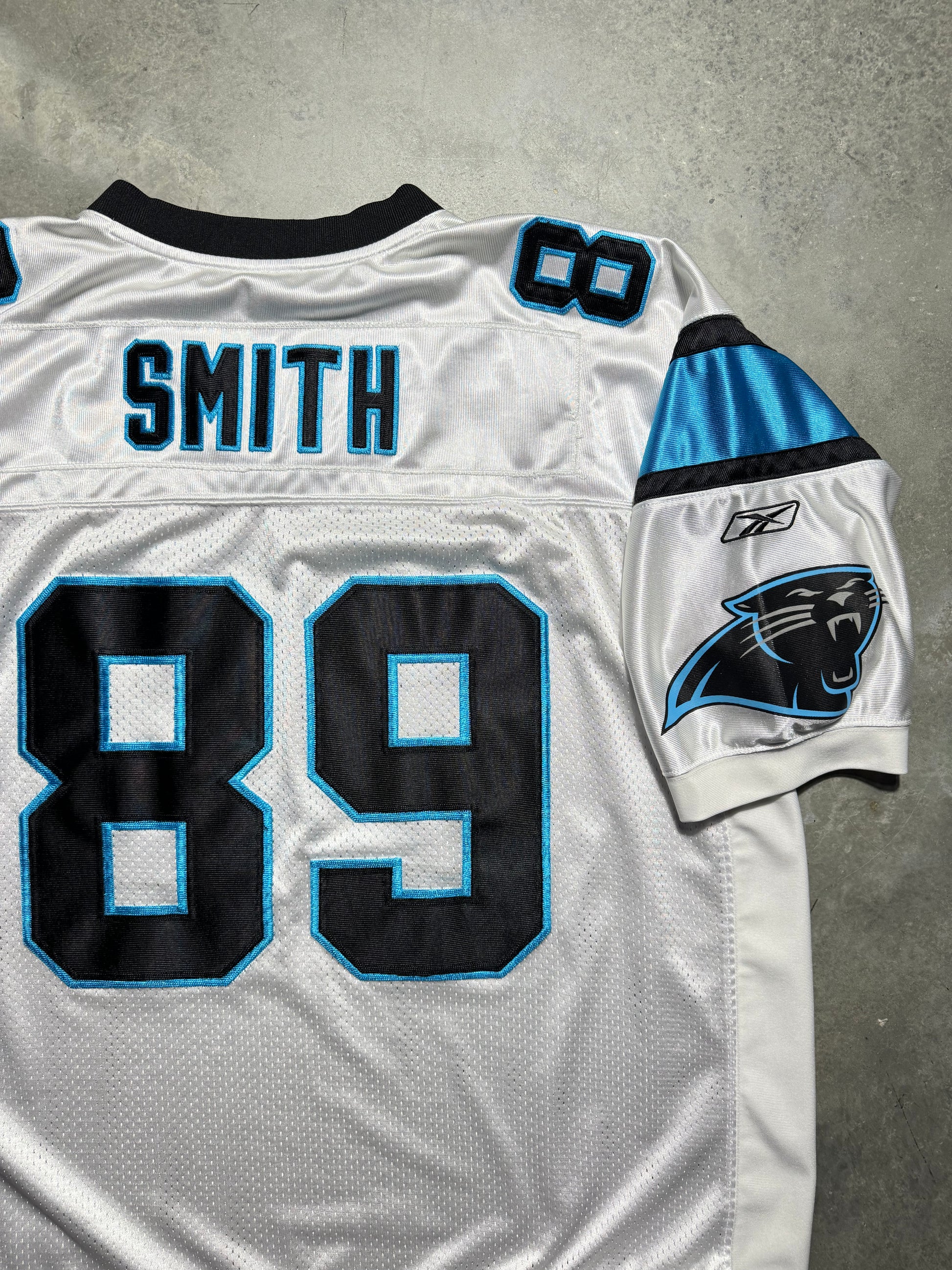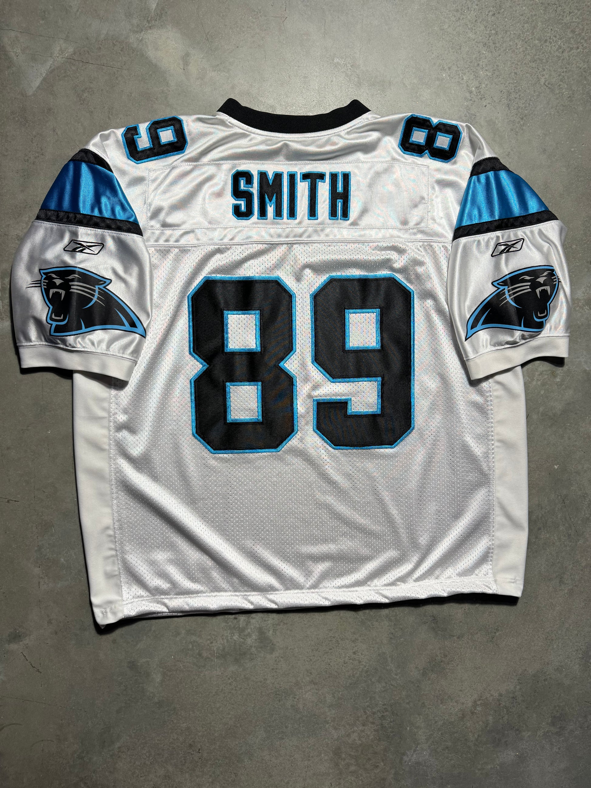 00’s Carolina Panthers Steve Smith Vintage White Reebok On Field Fully Embroidered NFL Jersey (XXL)