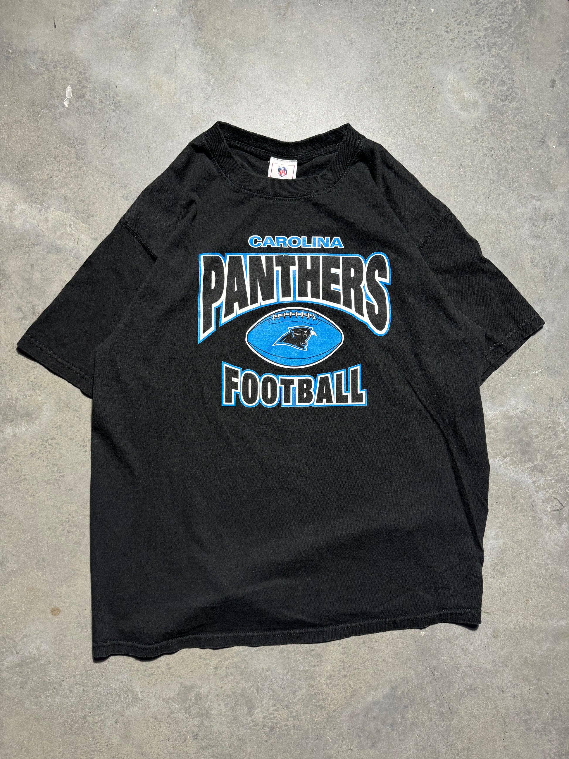 00’s Carolina Panthers Vintage Black Arch Logo Spellout NFL Tee (Large)