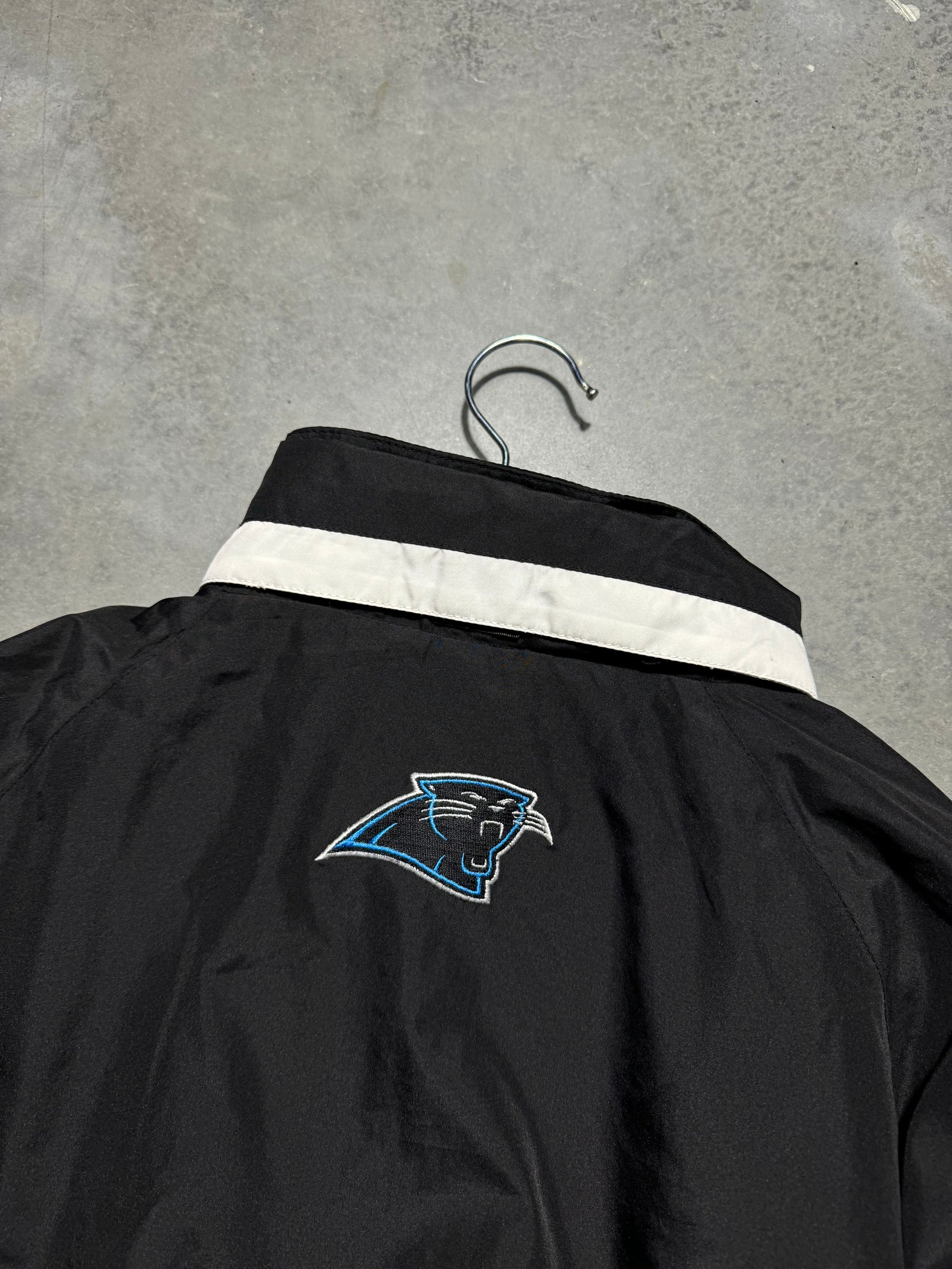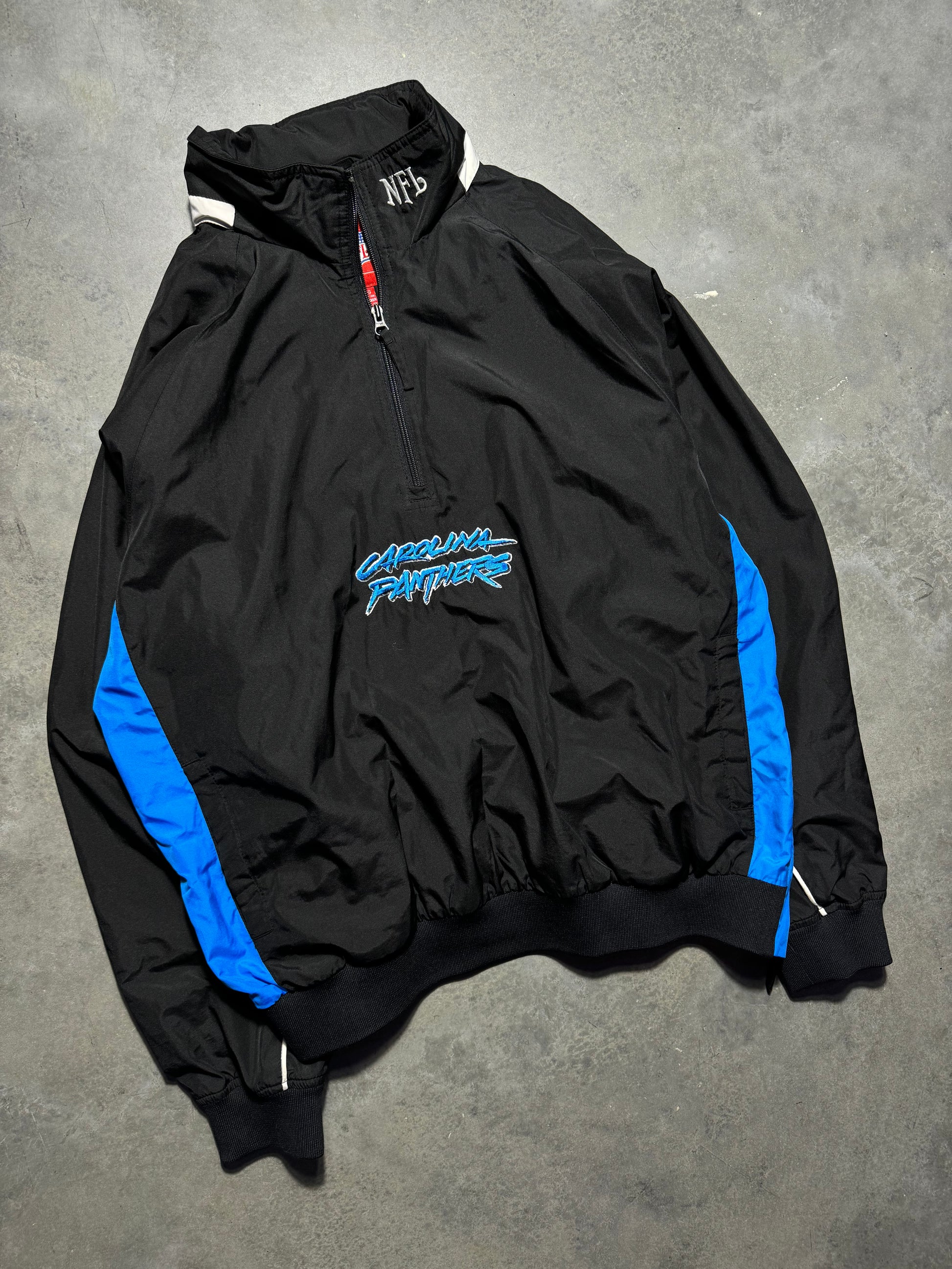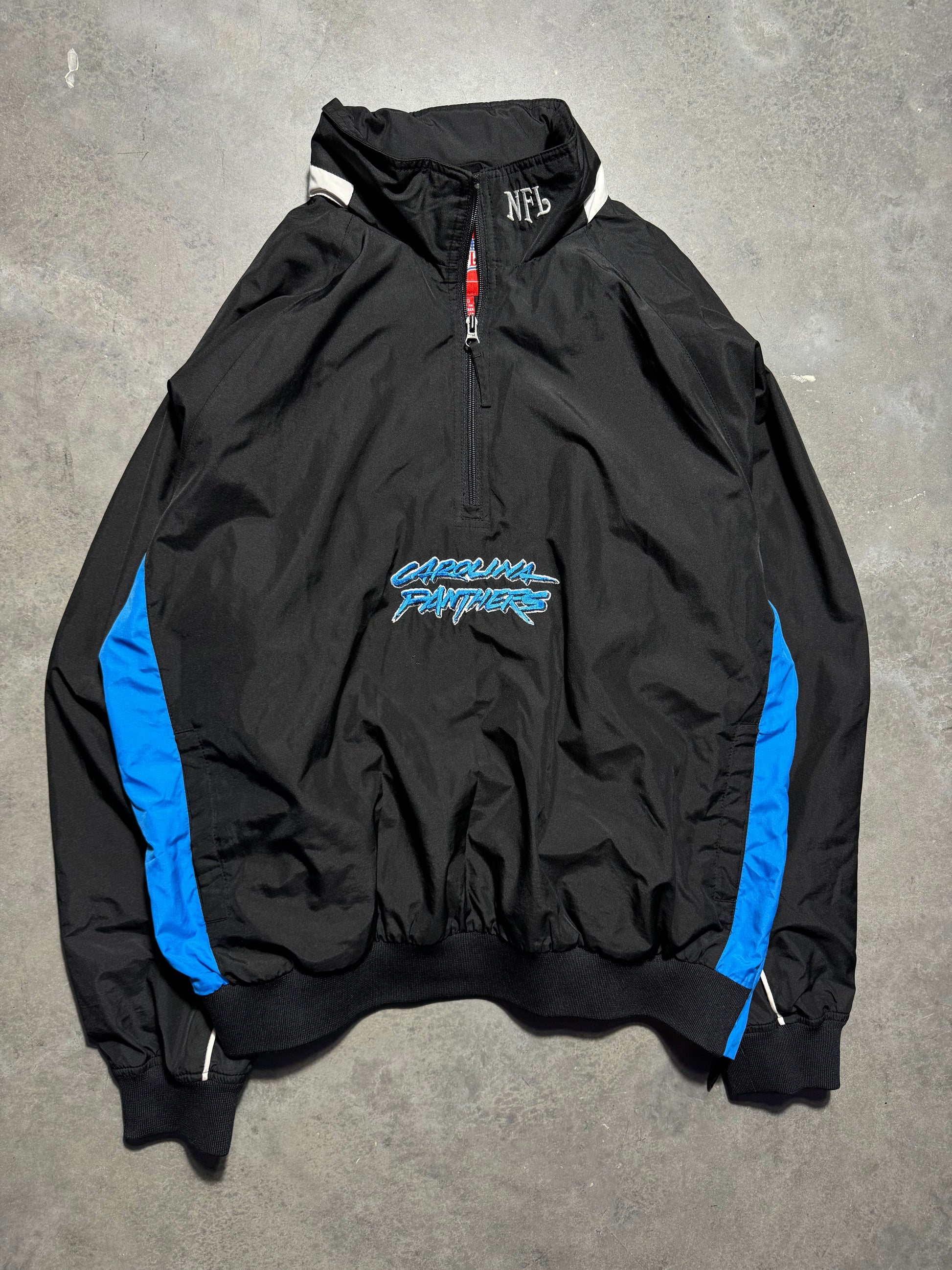 00’s Carolina Panthers Vintage Black Half Zip Cat Scratch Font Logo Anorak NFL Pullover Jacket (Large)