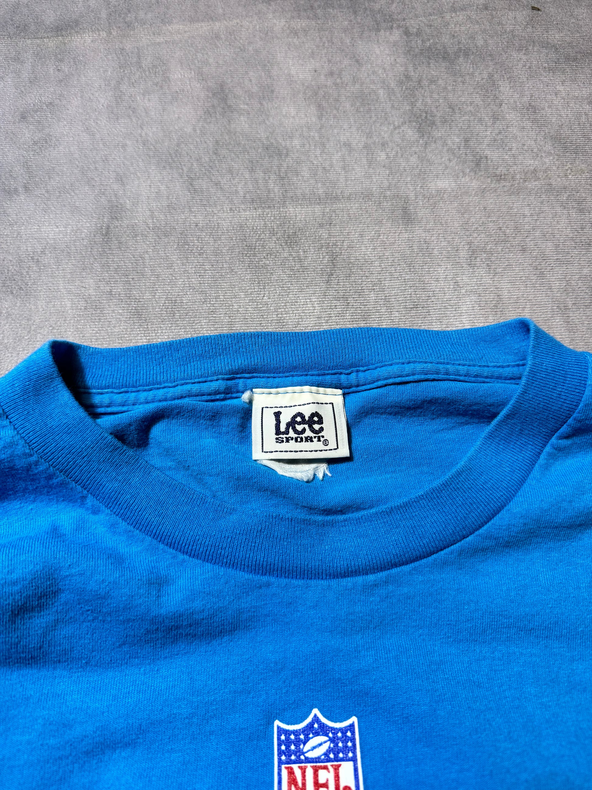 00’s Carolina Panthers Vintage Electric Blue Cat Scratch Font Lee Sport Longsleeve NFL Tee (XL)