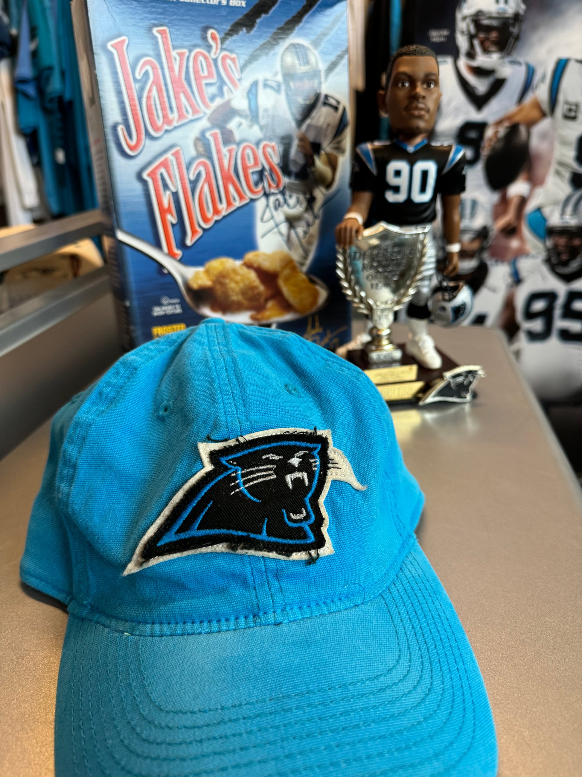00’s Carolina Panthers Vintage Electric Blue Distressed Logo Fitted NFL Hat (L/XL)