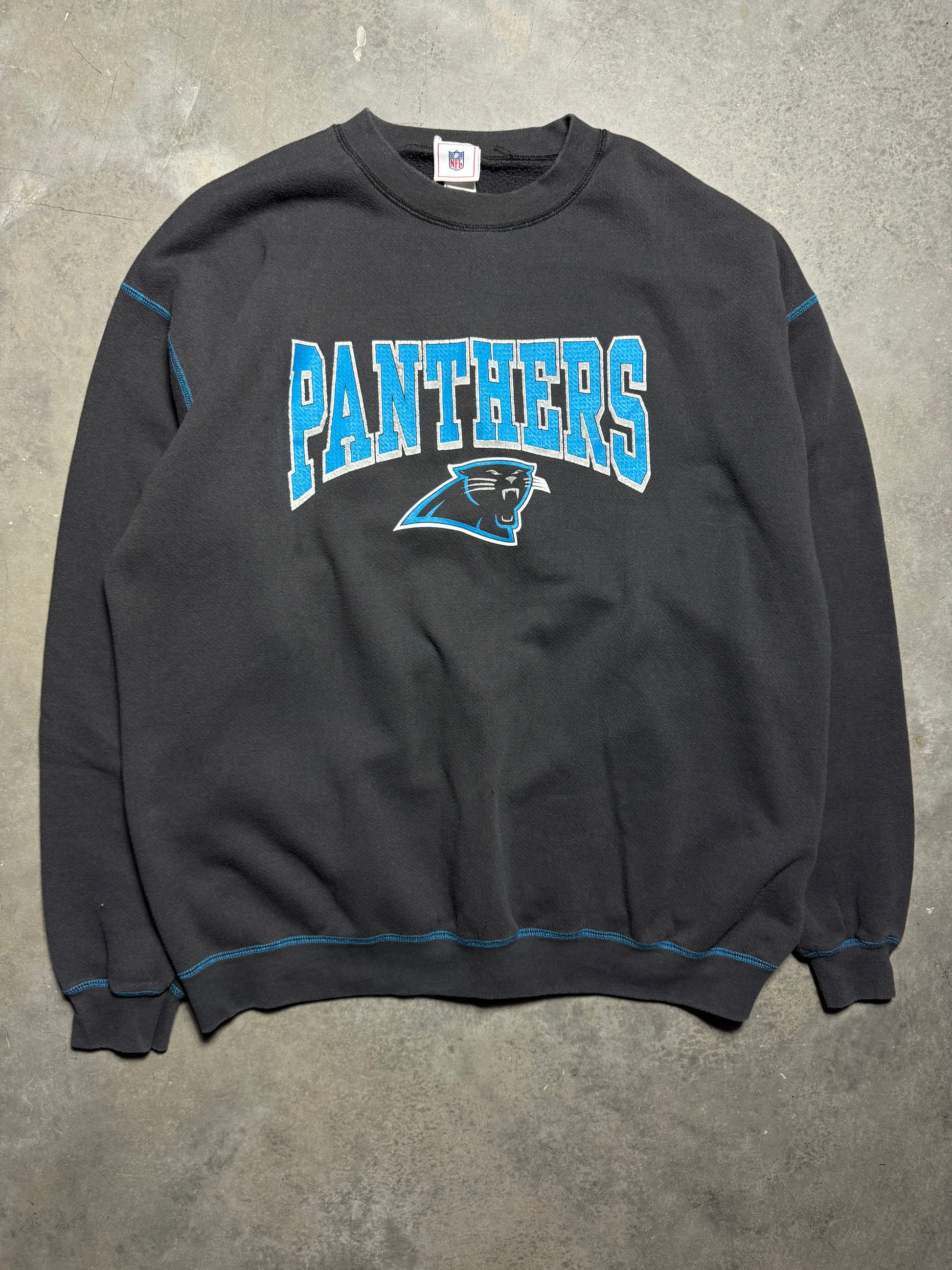 00’s Carolina Panthers Vintage Faded Black Contrast Stitching Block Letter NFL Crewneck (XXL)