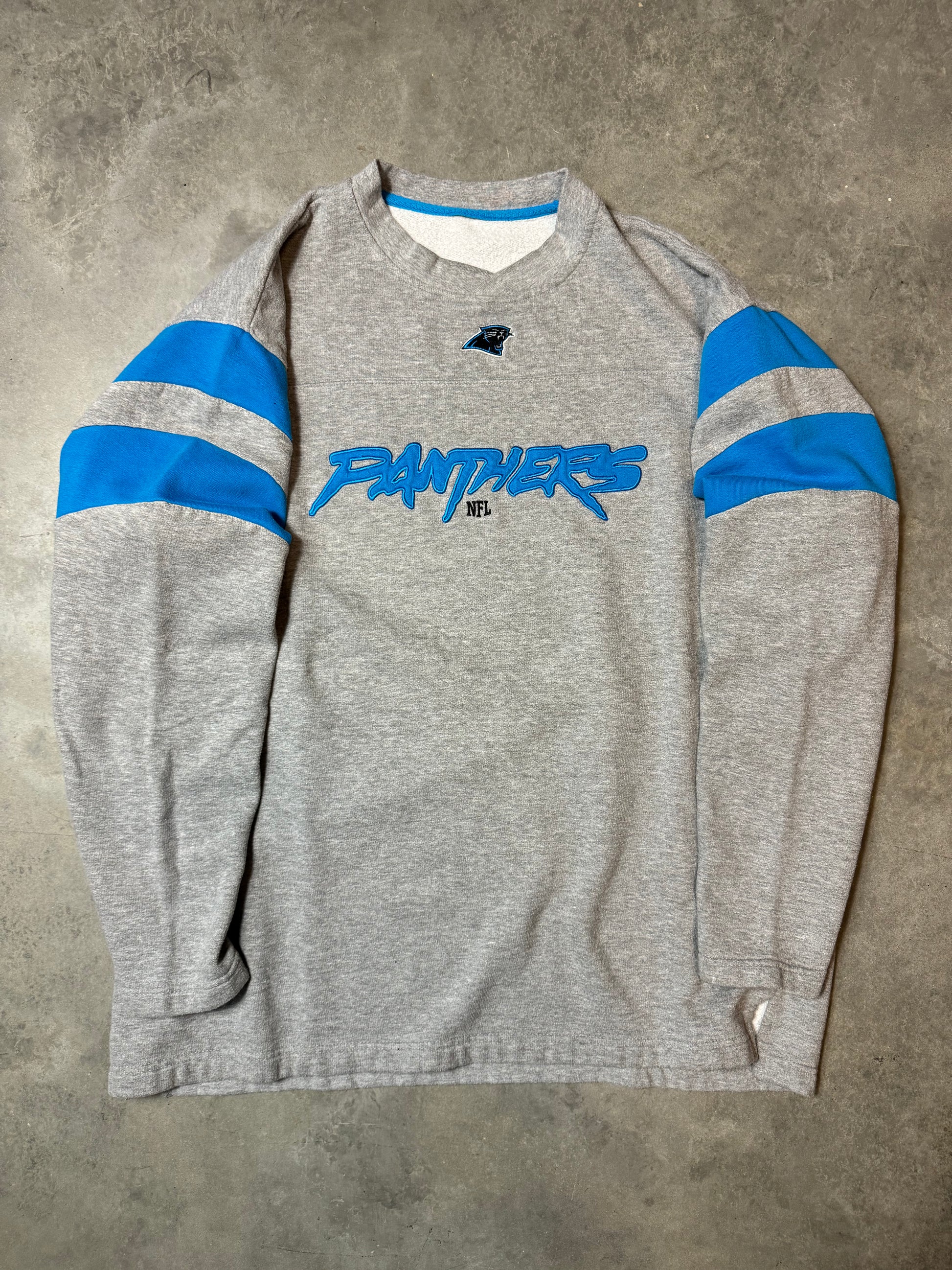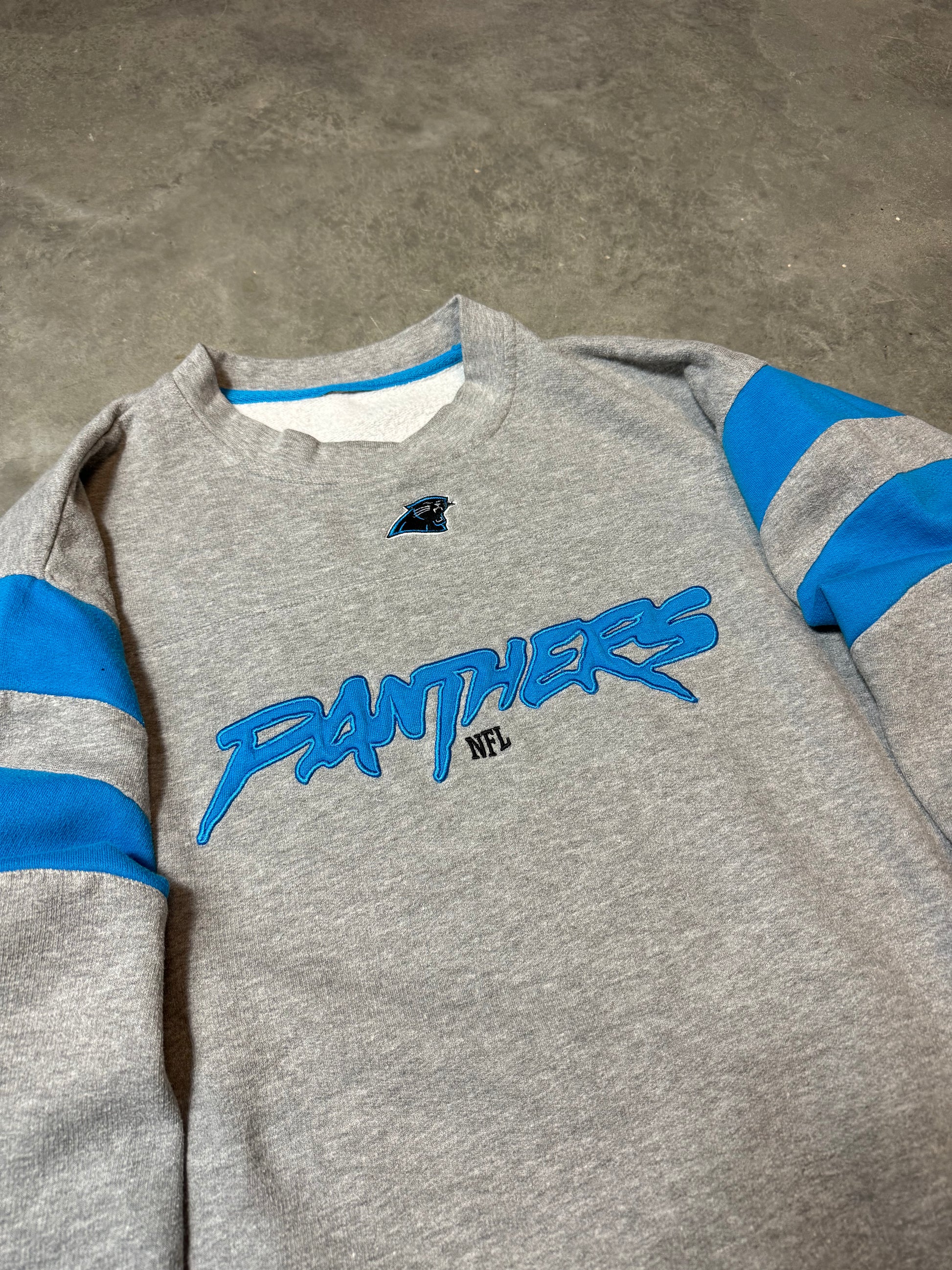 00’s Carolina Panthers Vintage Grey Cat Scratch Font Embroidered NFL Crewneck (XL)