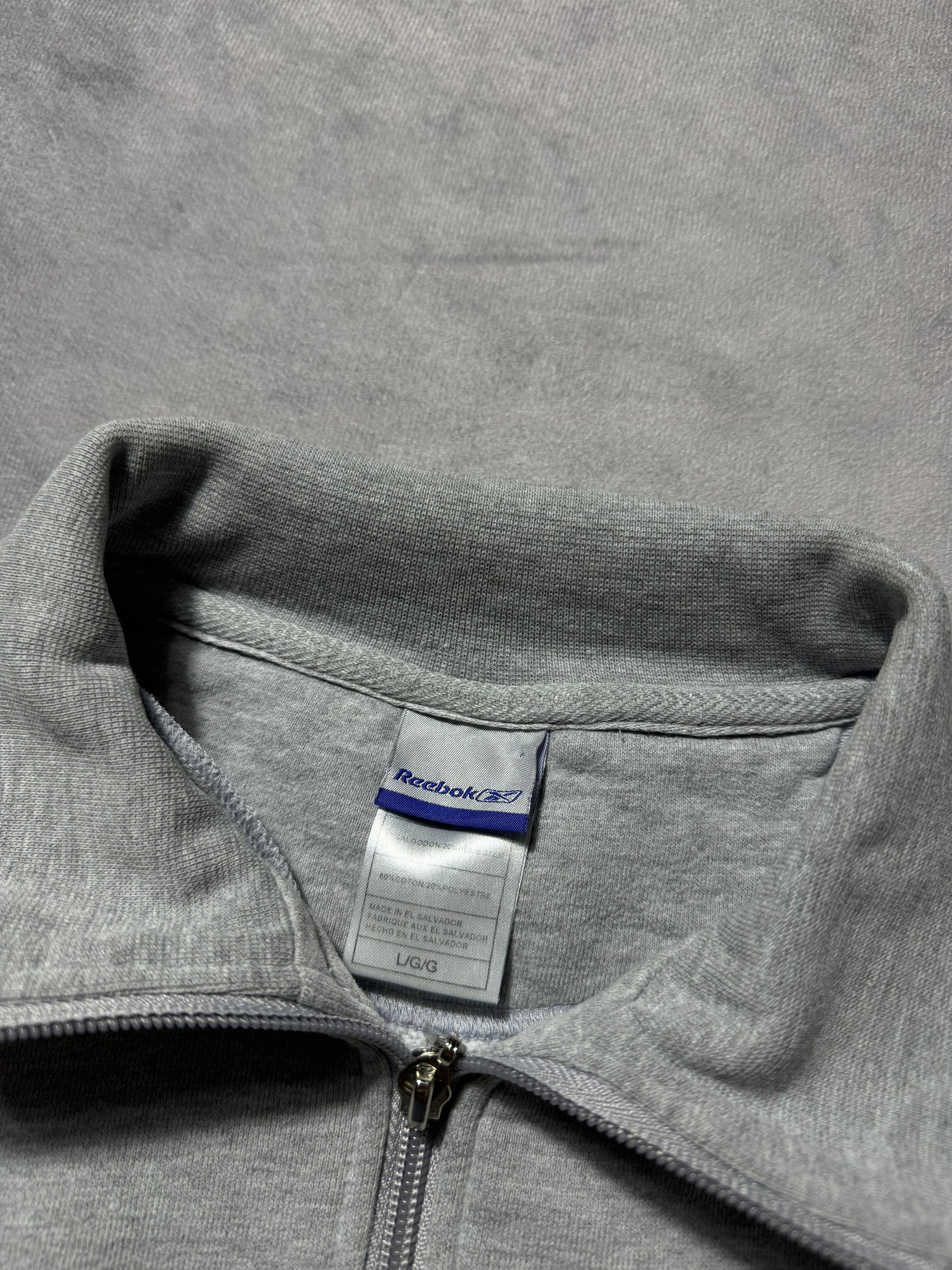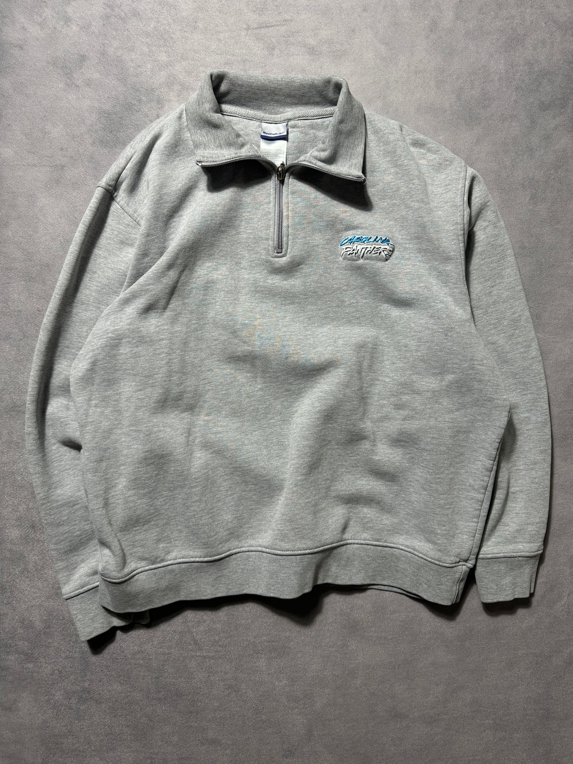 00’s Carolina Panthers Vintage Grey Reebok Cat Scratch Font Embroidered Quarter Zip NFL Pullover (Medium)