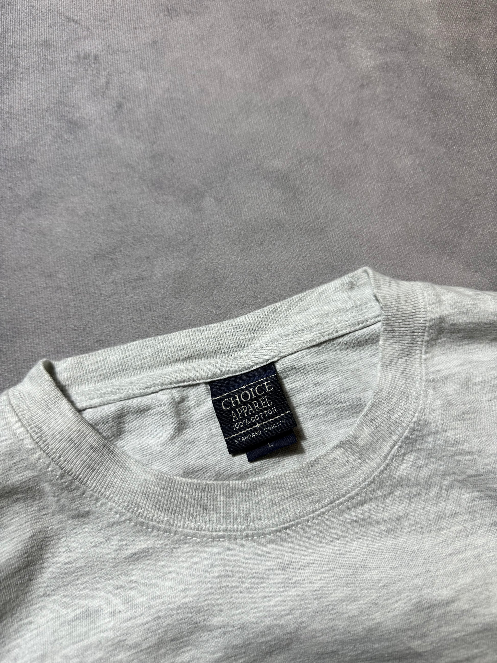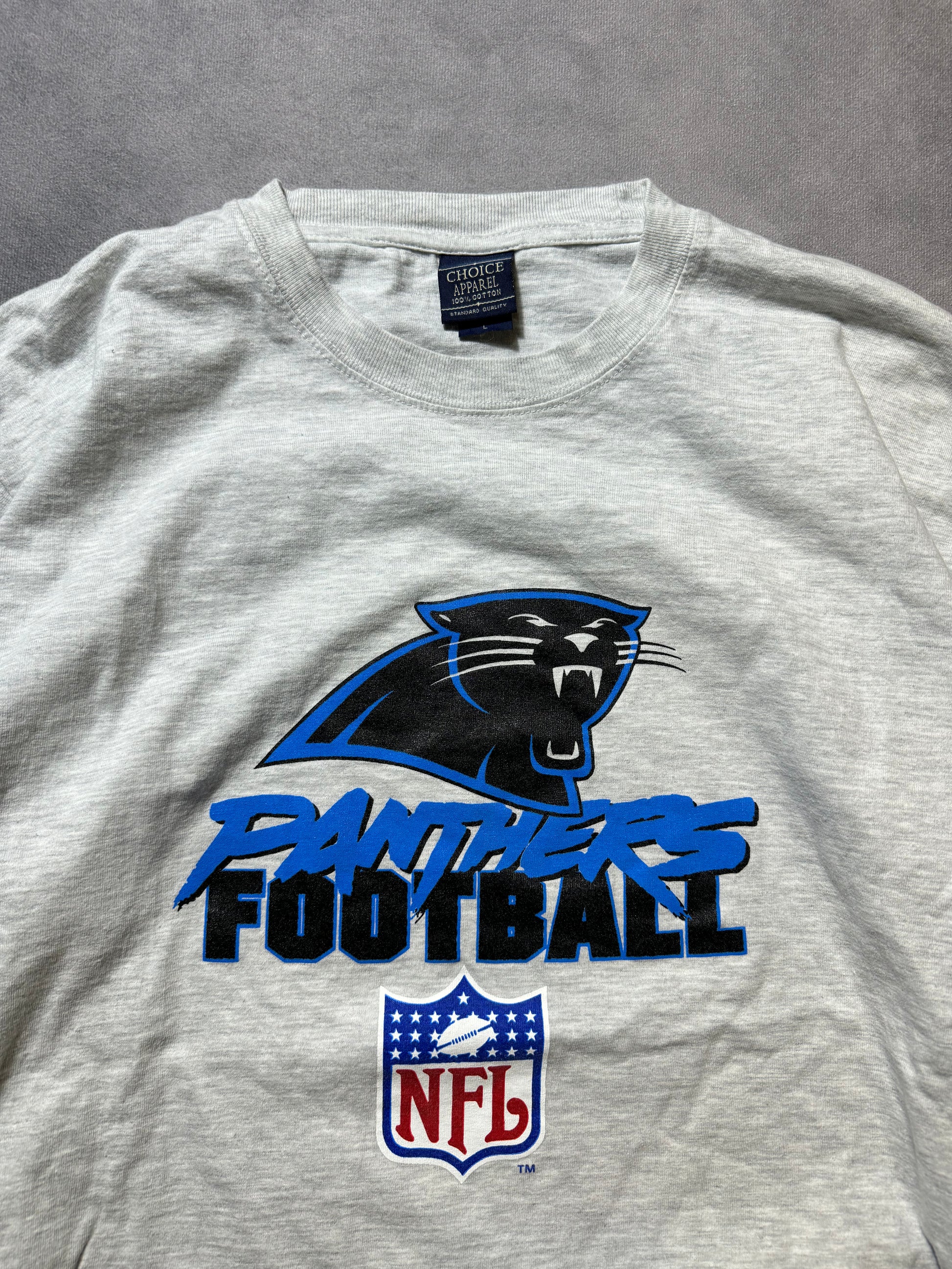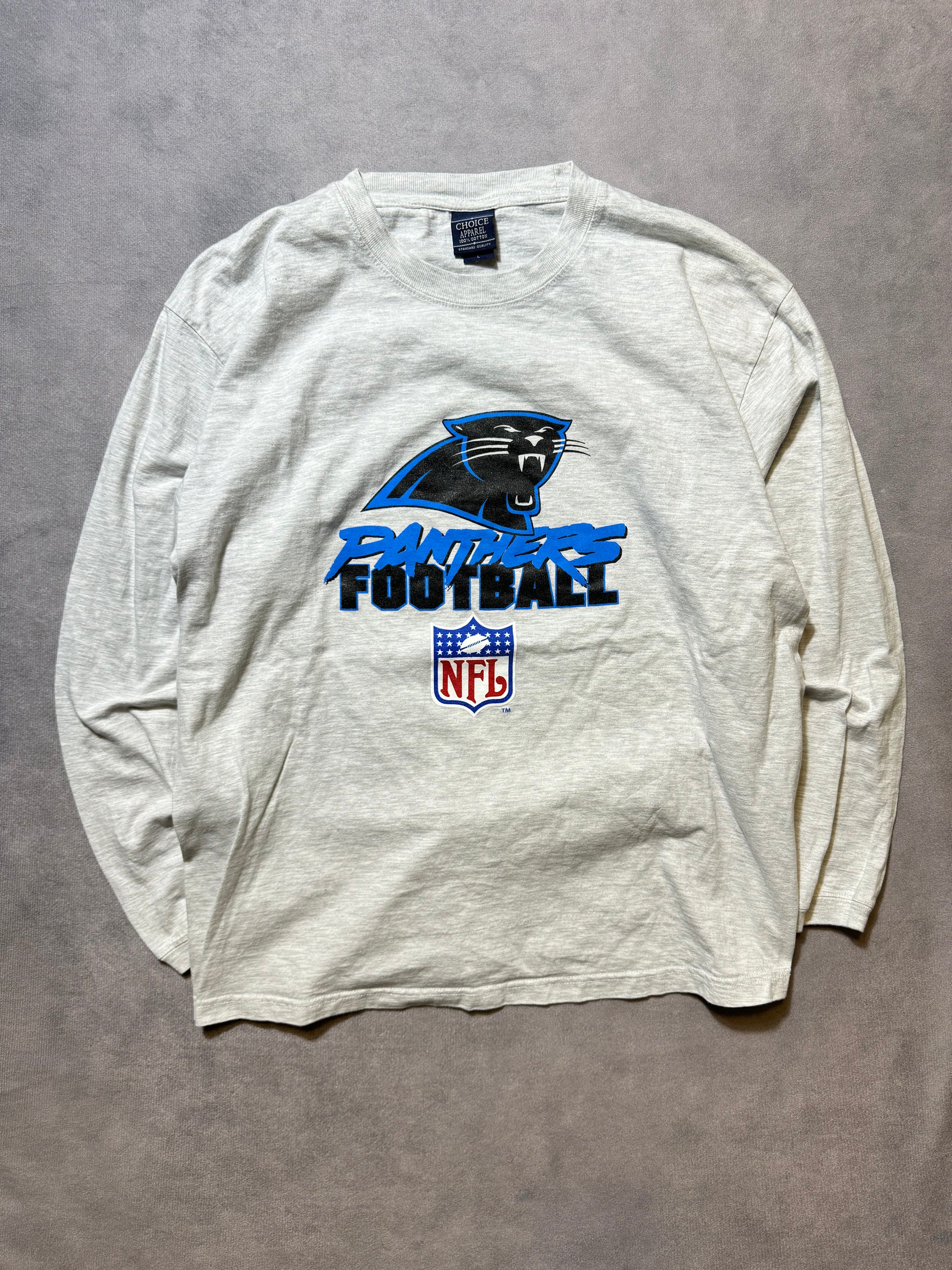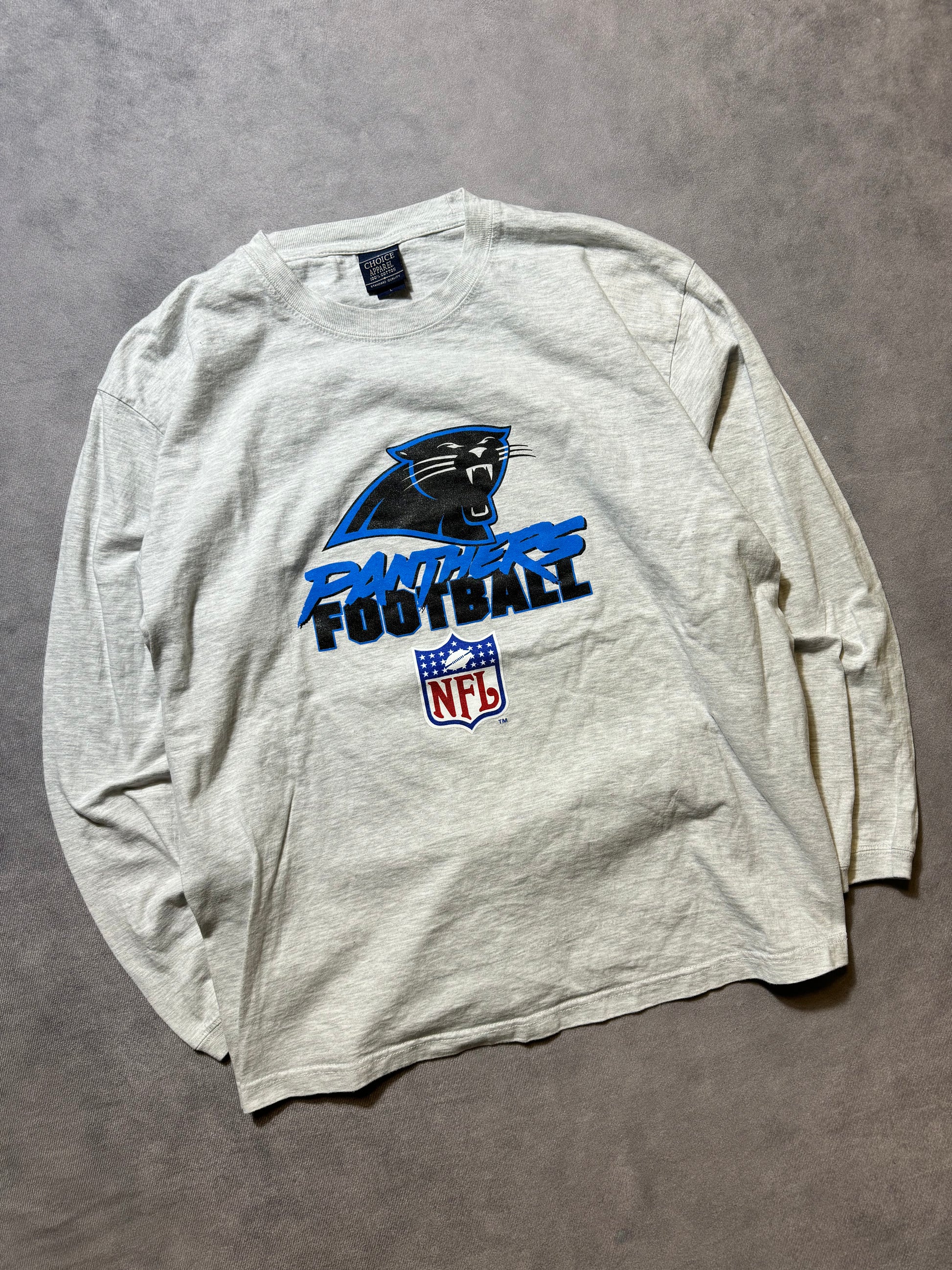 00’s Carolina Panthers Vintage Heather Grey Cat Scratch Font NFL Longsleeve Tee (Medium)