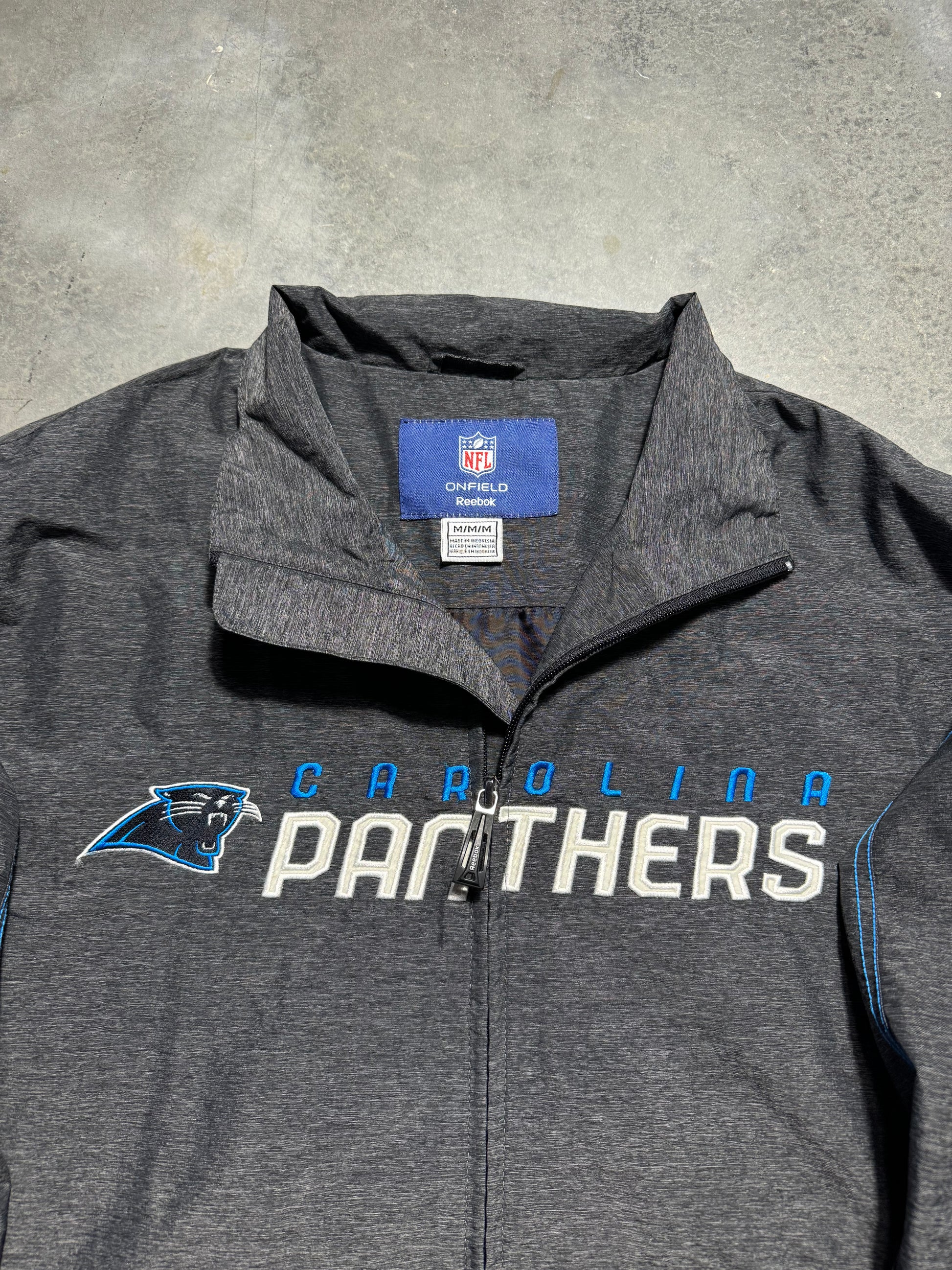 00’s Carolina Panthers Vintage Reebok NFL Equipment Sideline Style Full Zip Windbreaker Jacket (Medium)
