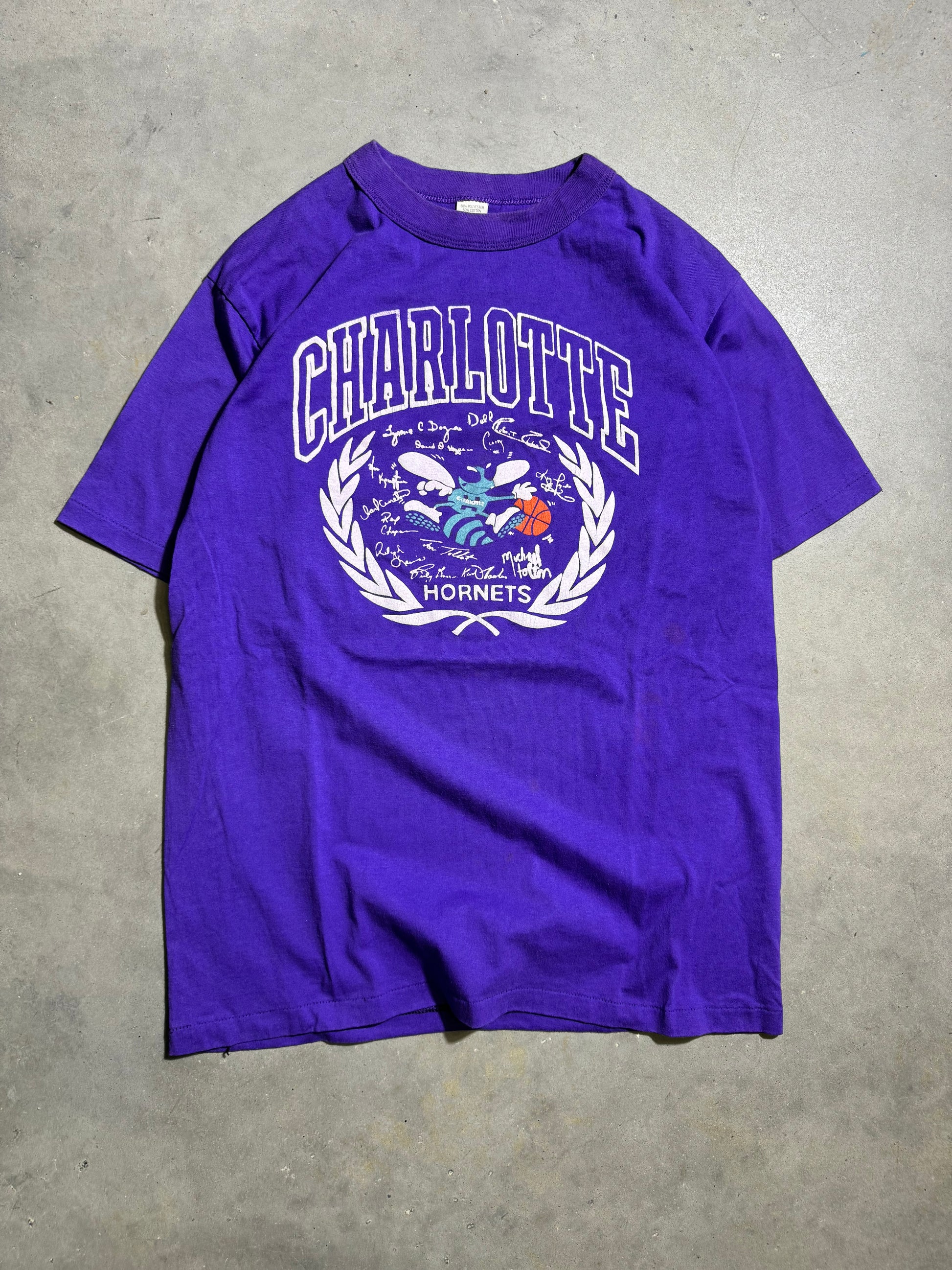 1988 Charlotte Hornets Vintage Purple Inaugural Season Seal Logo NBA Tee (Large)
