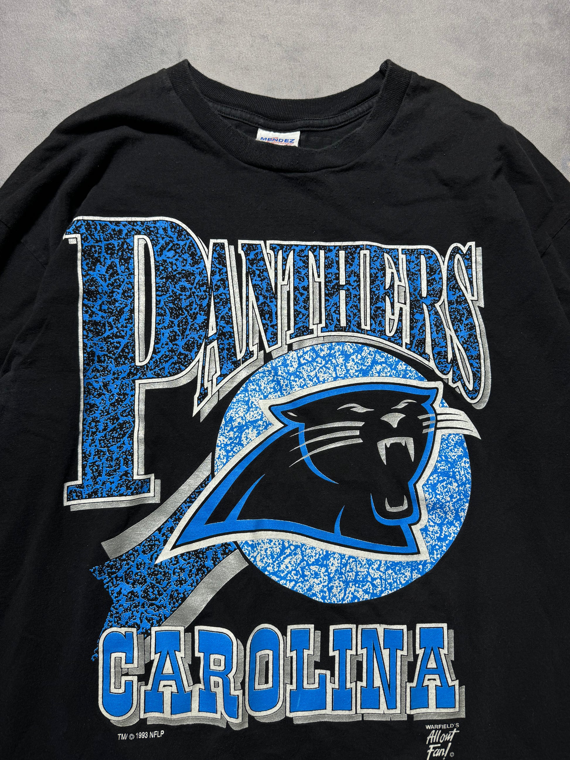 1993 Carolina Panthers Vintage Black Big Spellout Western Font NFL Tee (Large)