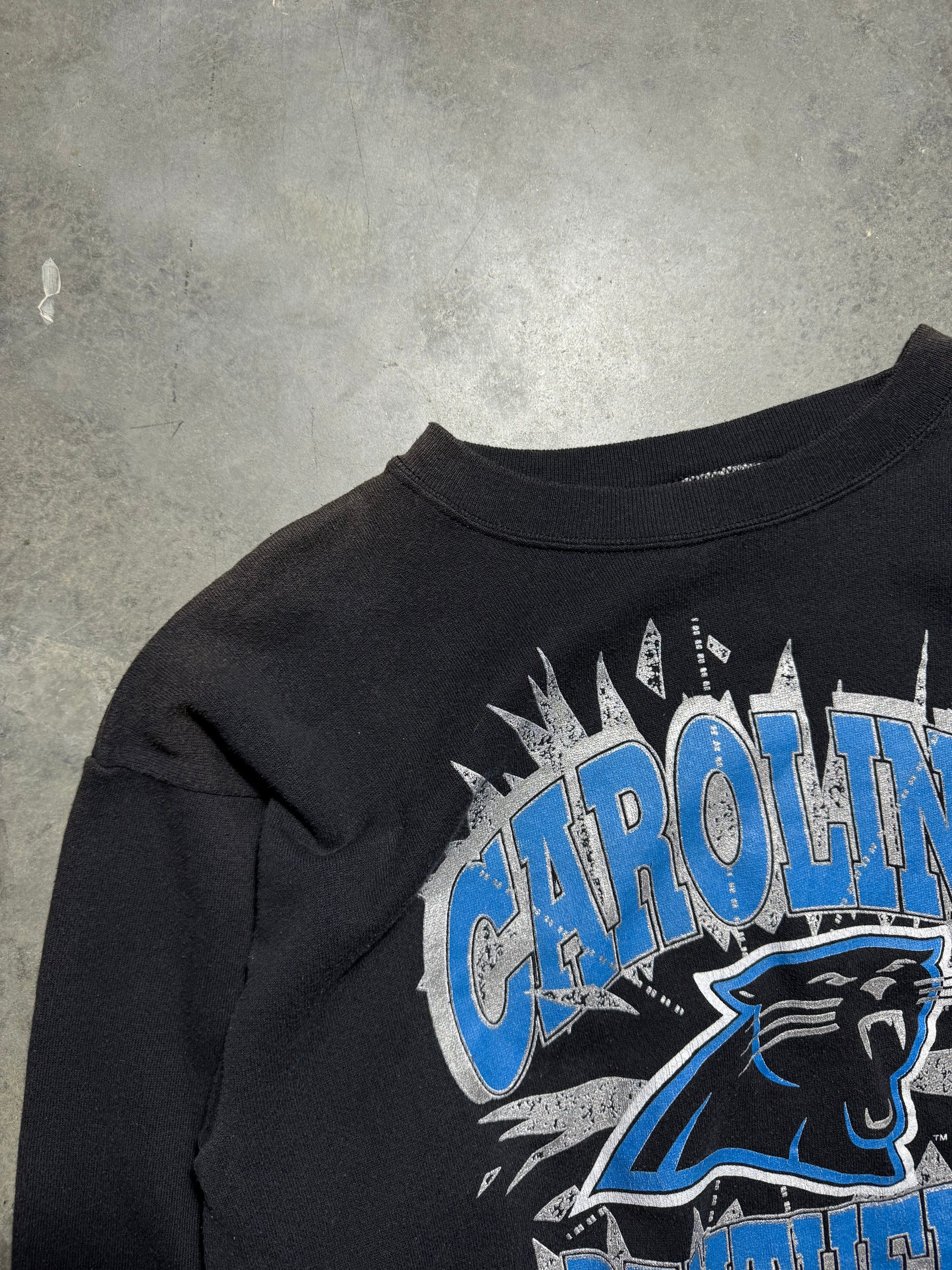 1993 Carolina Panthers Vintage Black Breakthrough Style Spellout NFL Crewneck (Large)