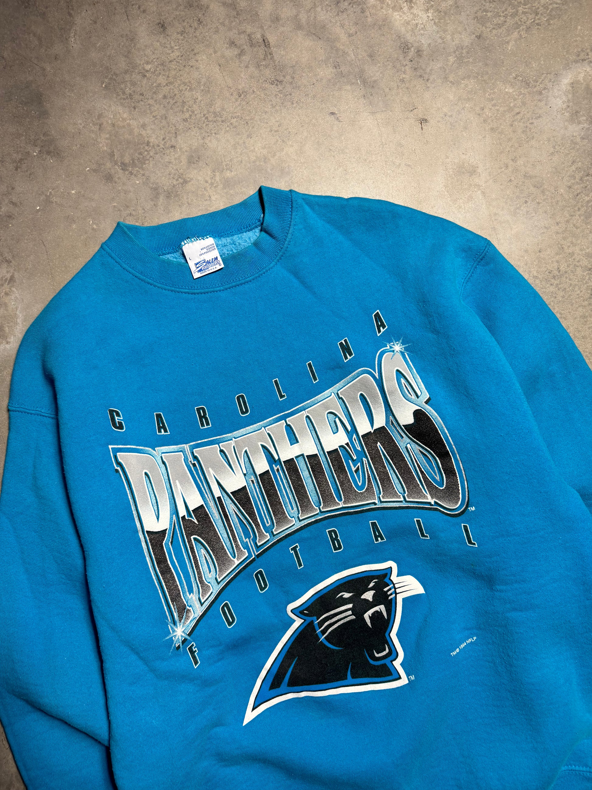 1994 Carolina Panthers Vintage Blue Salem Sportswear Heavyweight Chrome Spellout NFL Crewneck (Large)