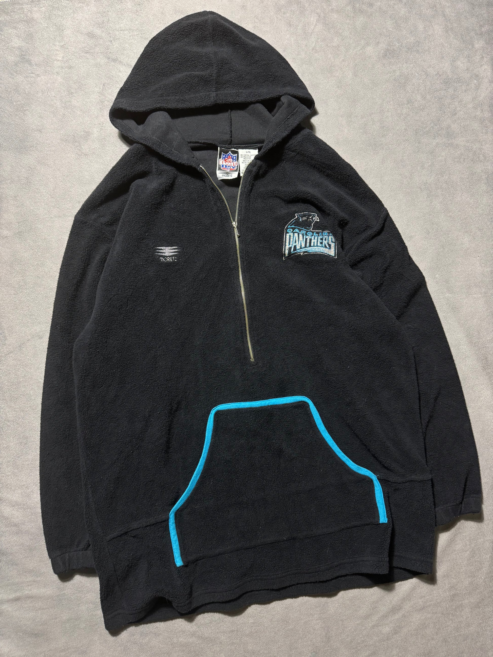 1995 Carolina Panthers Vintage Black Half Zip Embroidered NFL Fleece Pullover (Large)