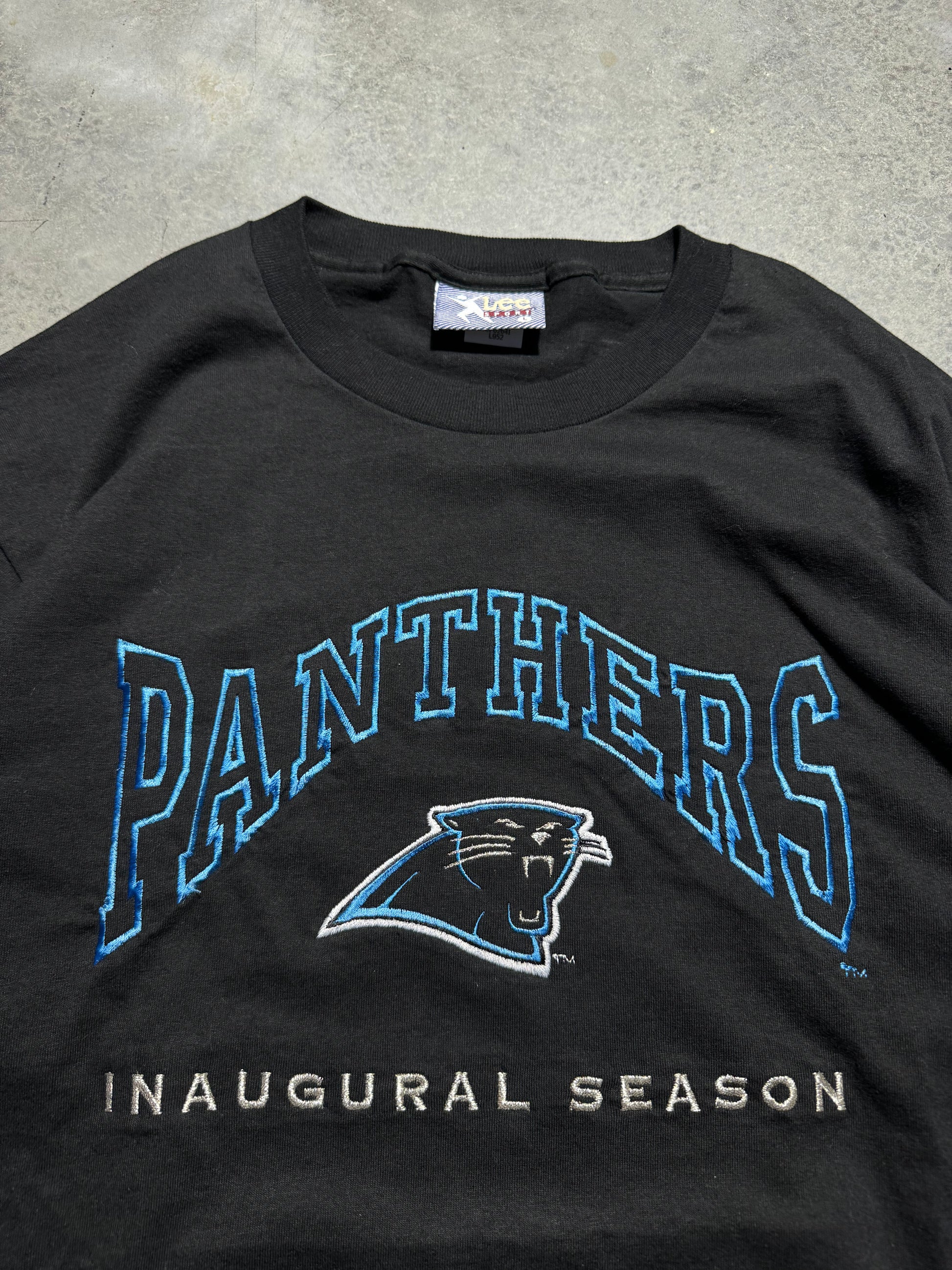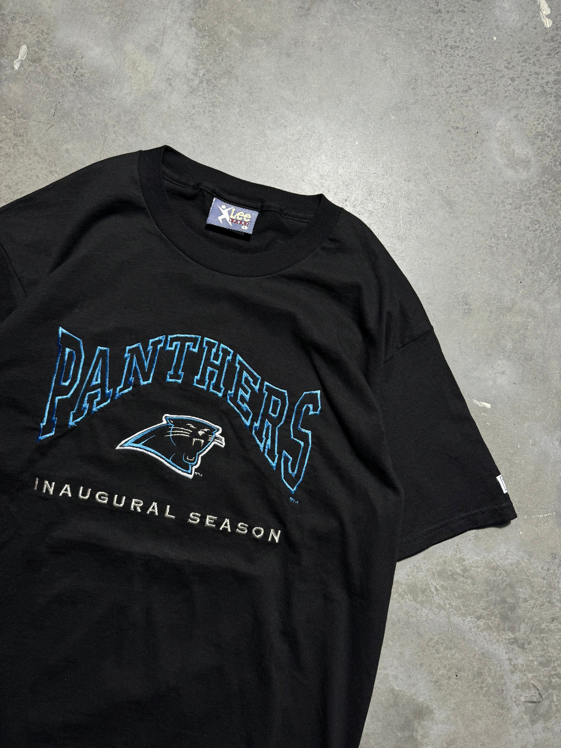 1995 Carolina Panthers Vintage Black Lee Sport Embroidered Inaugural Season NFL Tee (Large)