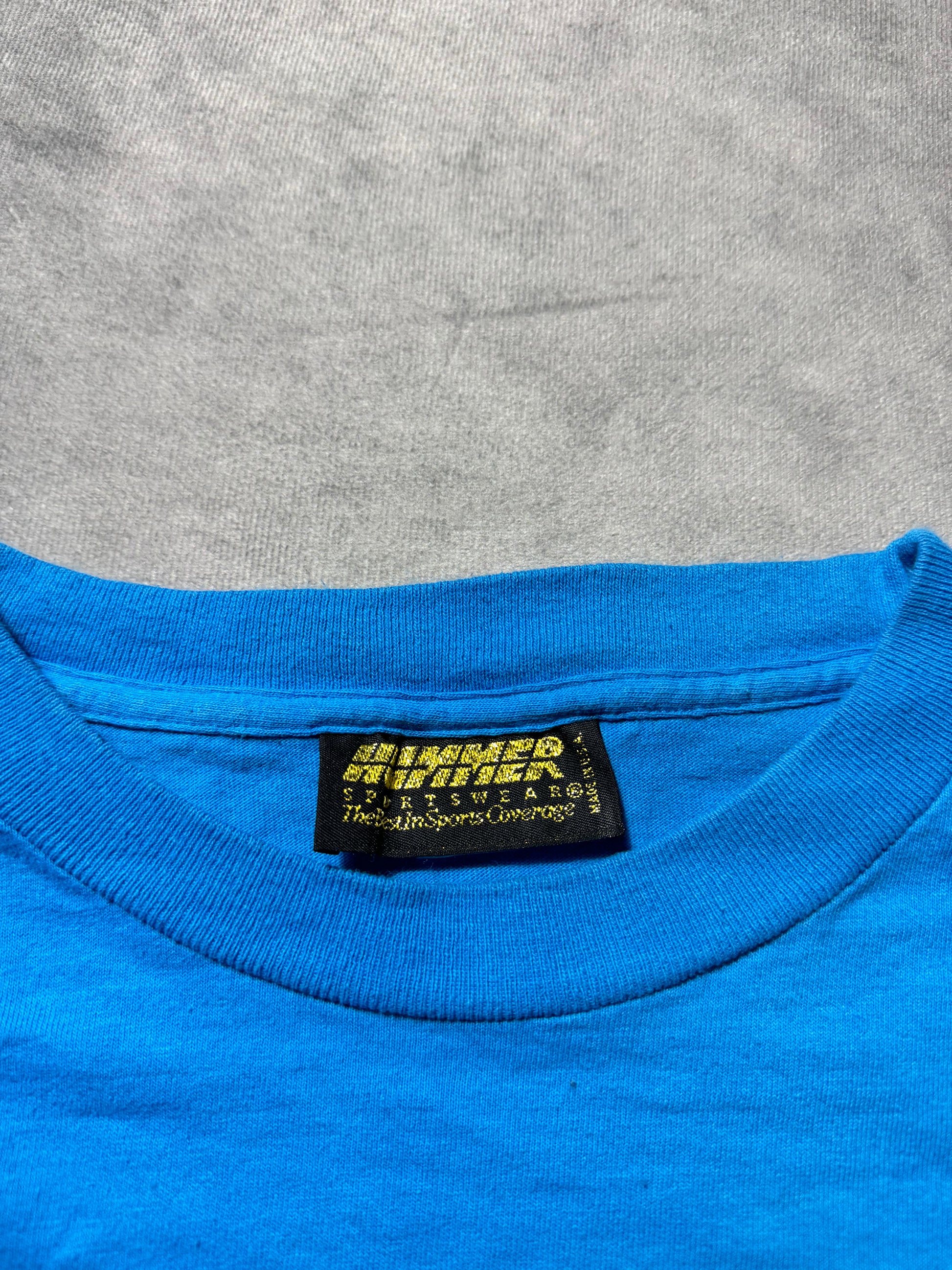 1995 Carolina Panthers Vintage Blue Hummer Sportswear Inaugural Season Block Letter NFL Spellout Tee (Large)