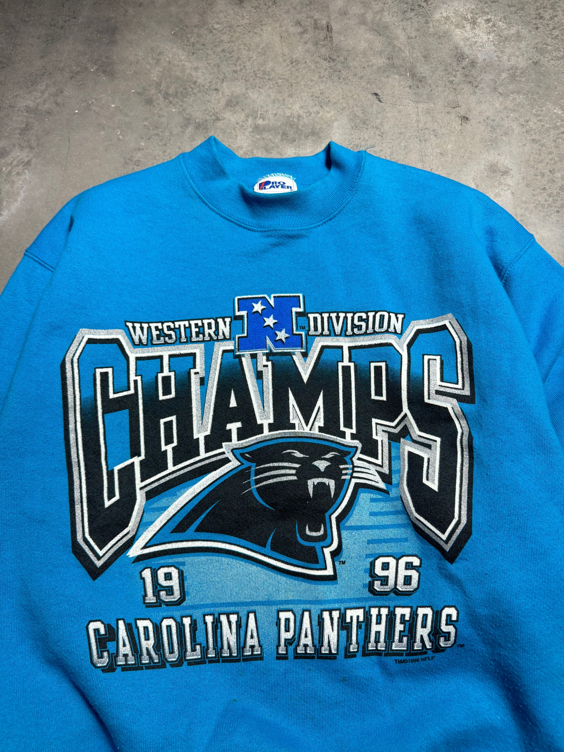 1996 Carolina Panthers Vintage Electric Blue Pro Player NFC Western Division Champions Heavyweight NFL Crewneck (Large)