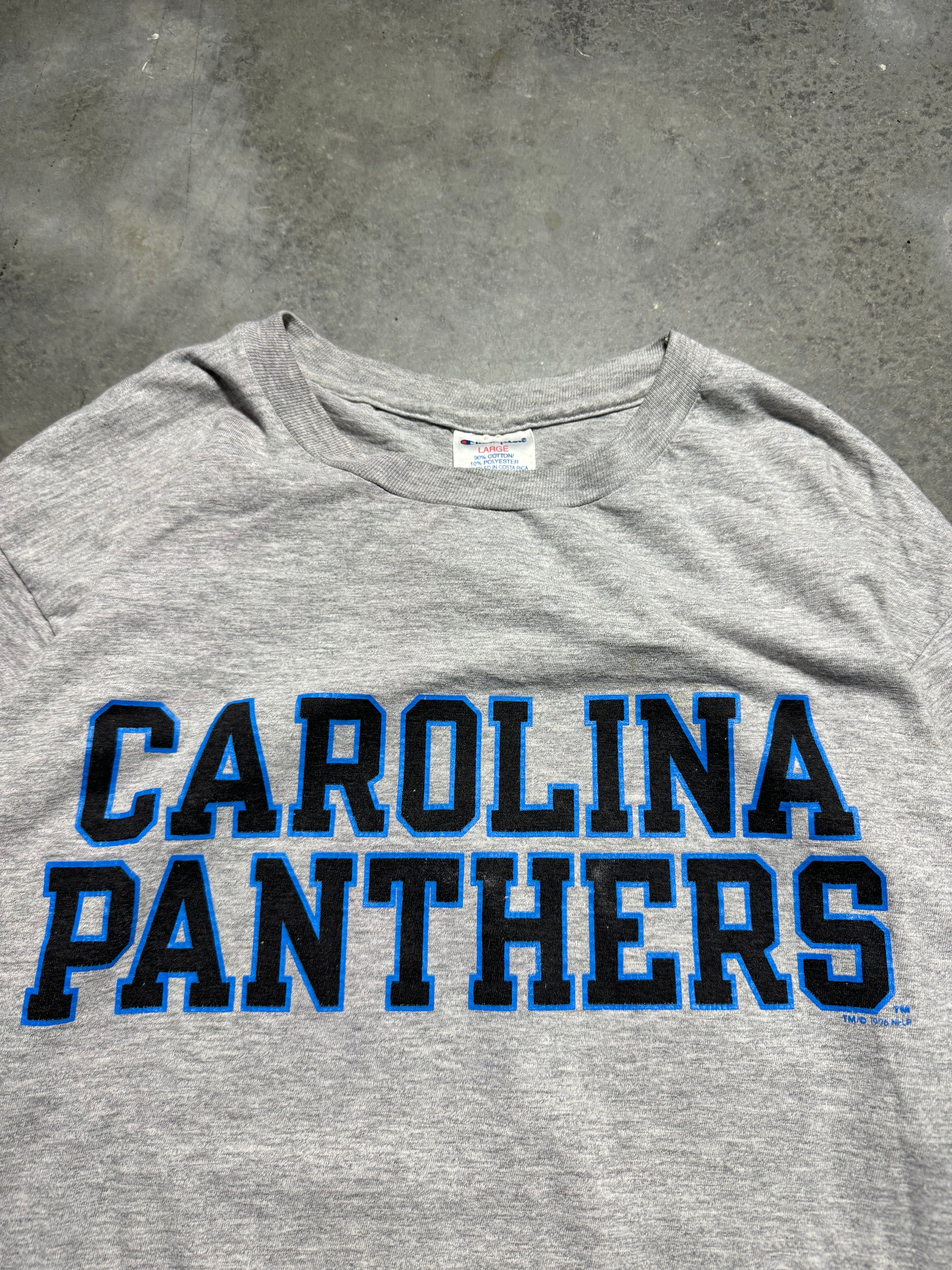 1996 Carolina Panthers Vintage Grey Champion Practice Style NFL Spellout Tee (Large)