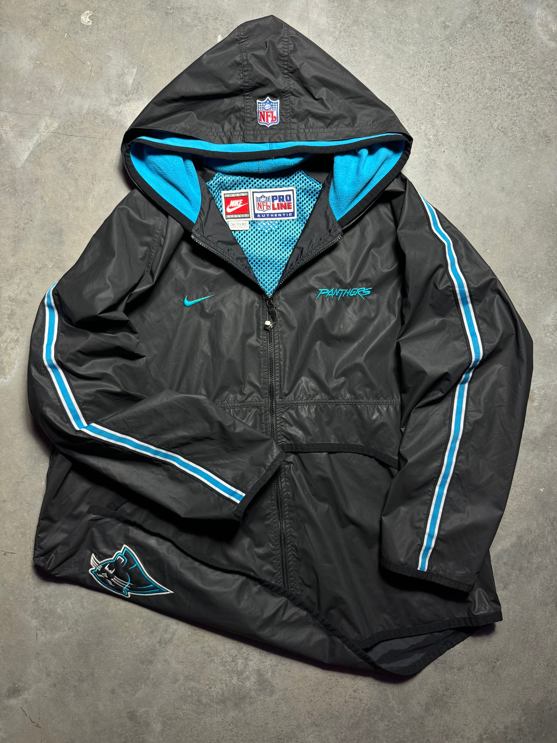 2000 Carolina Panthers Vintage Black Nike Cat Scratch Font Sideline NFL Jacket (XXL)