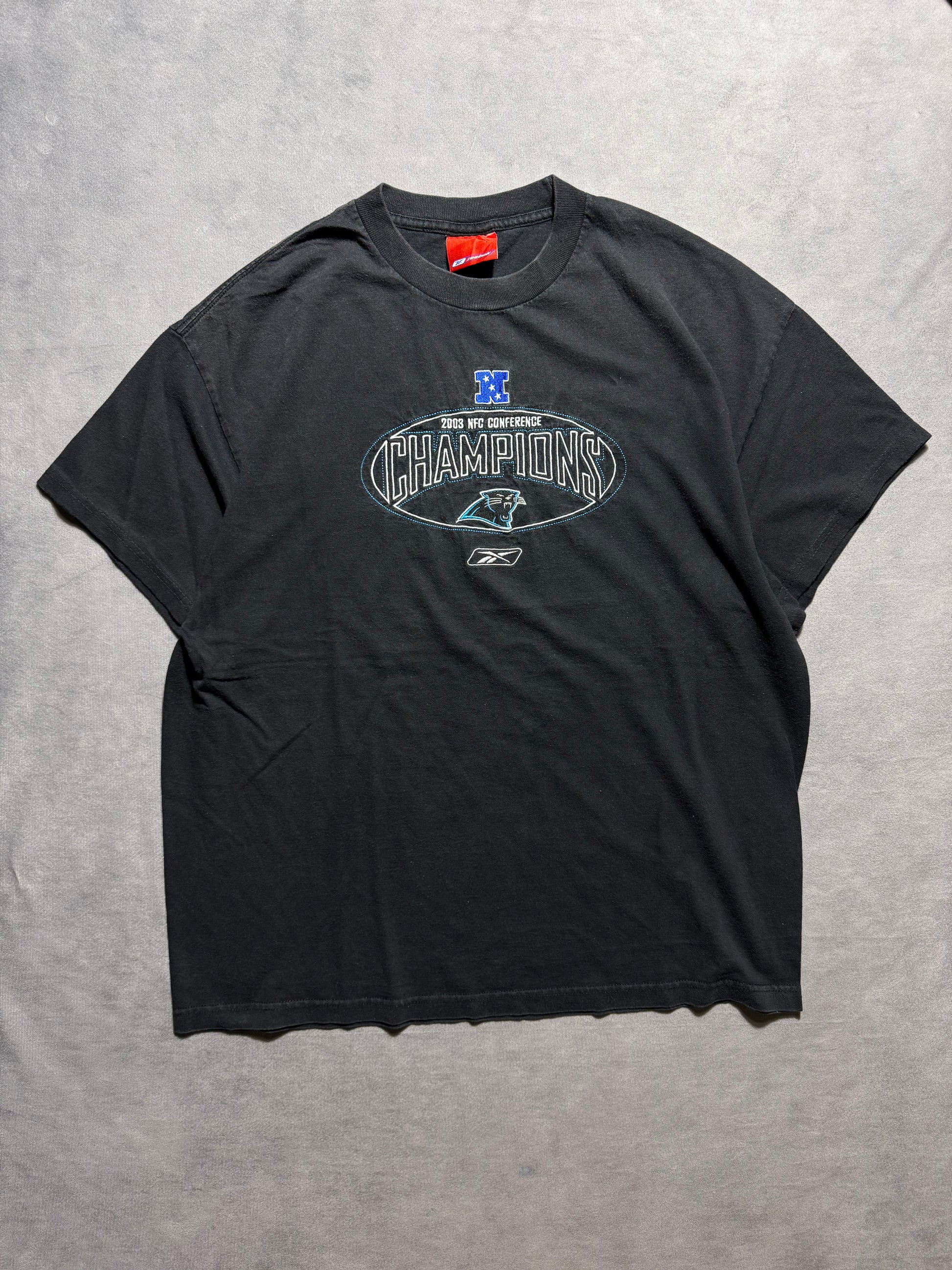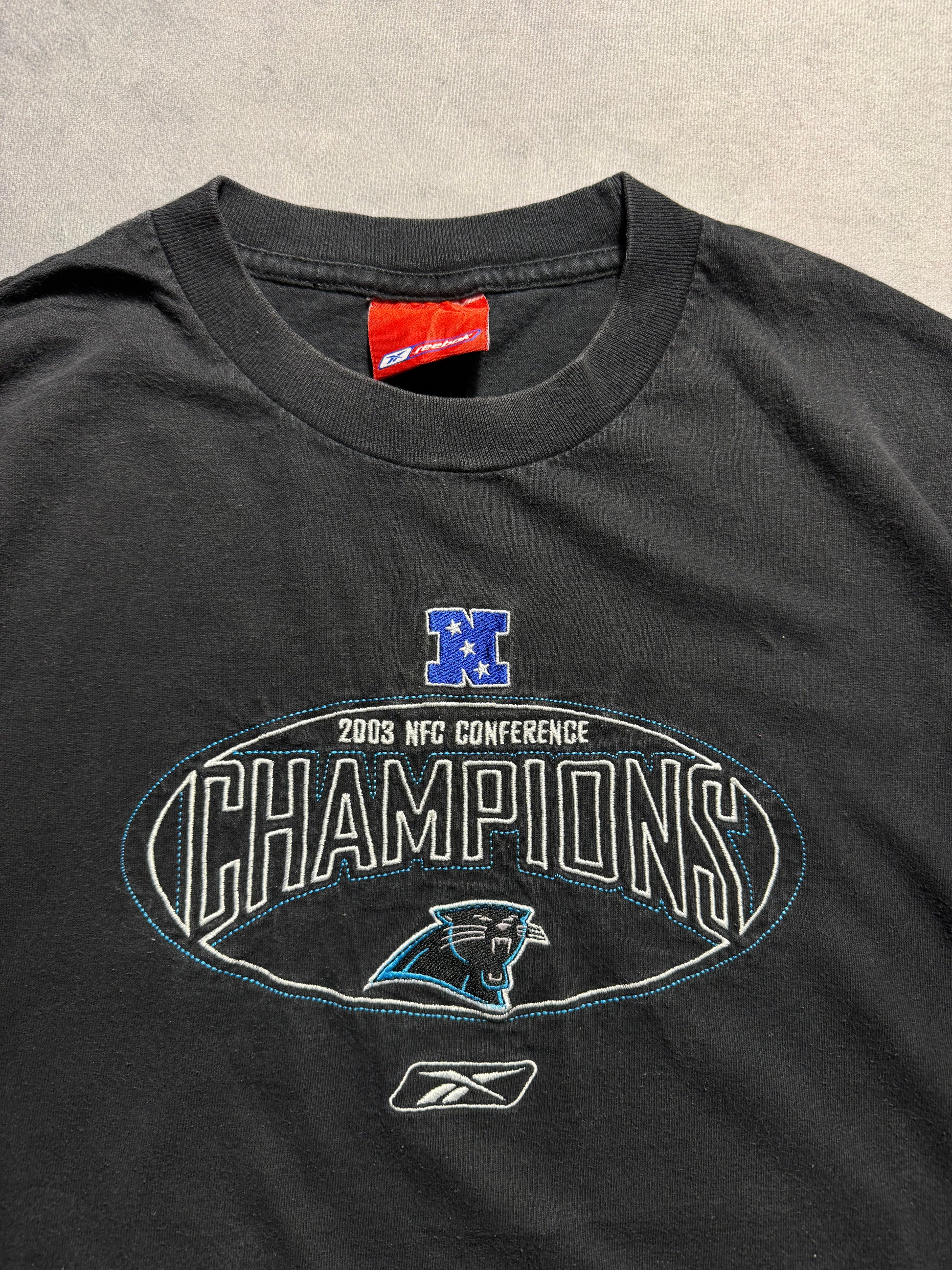 2003 Carolina Panthers NFC Champions Vintage Black Reebok Embroidered NFL Tee (Large)