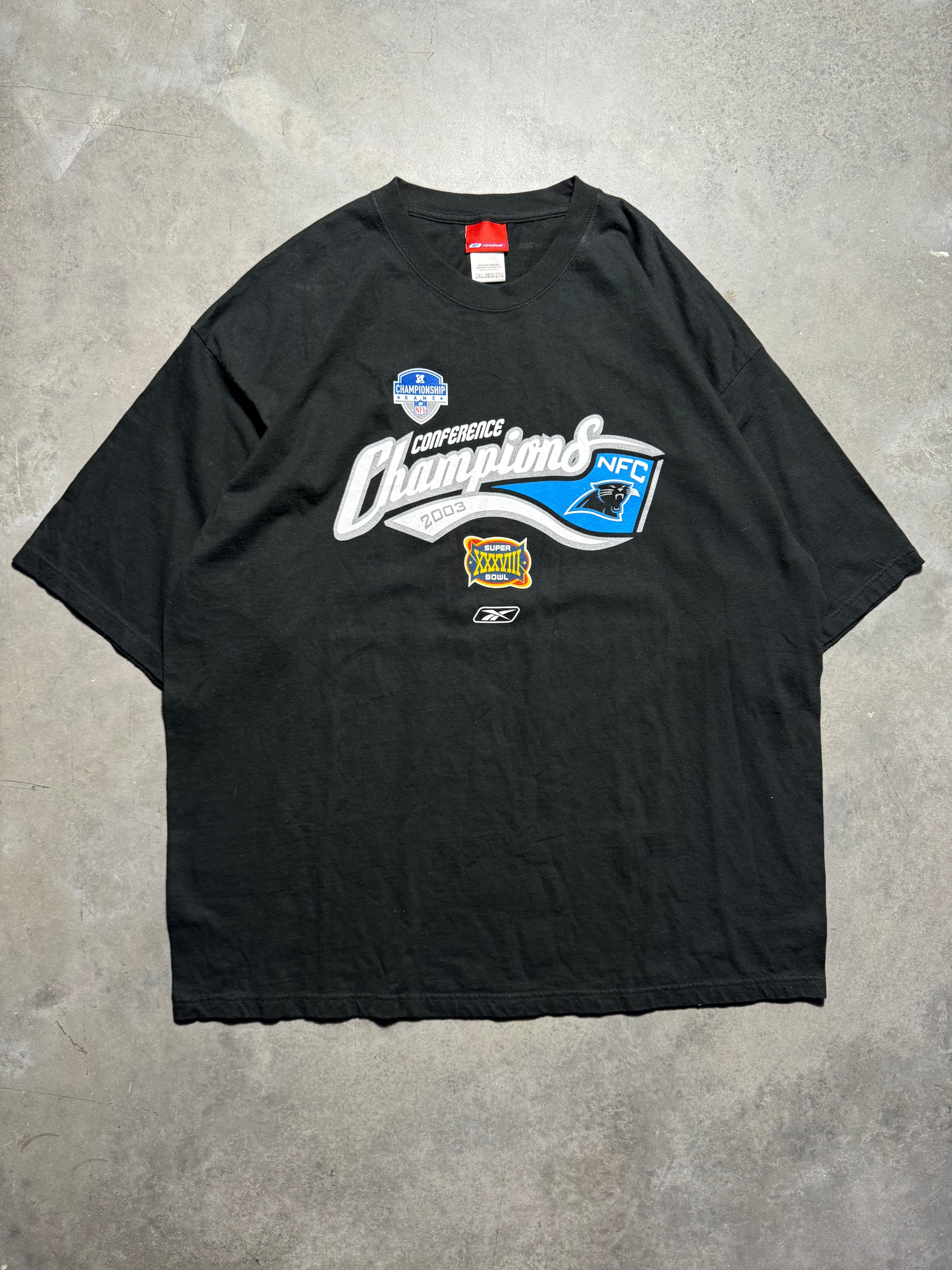 2003 Carolina Panthers Vintage Black Reebok NFC Champions Super Bowl XXXVIII NFL Tee - Deadstock (XXL)