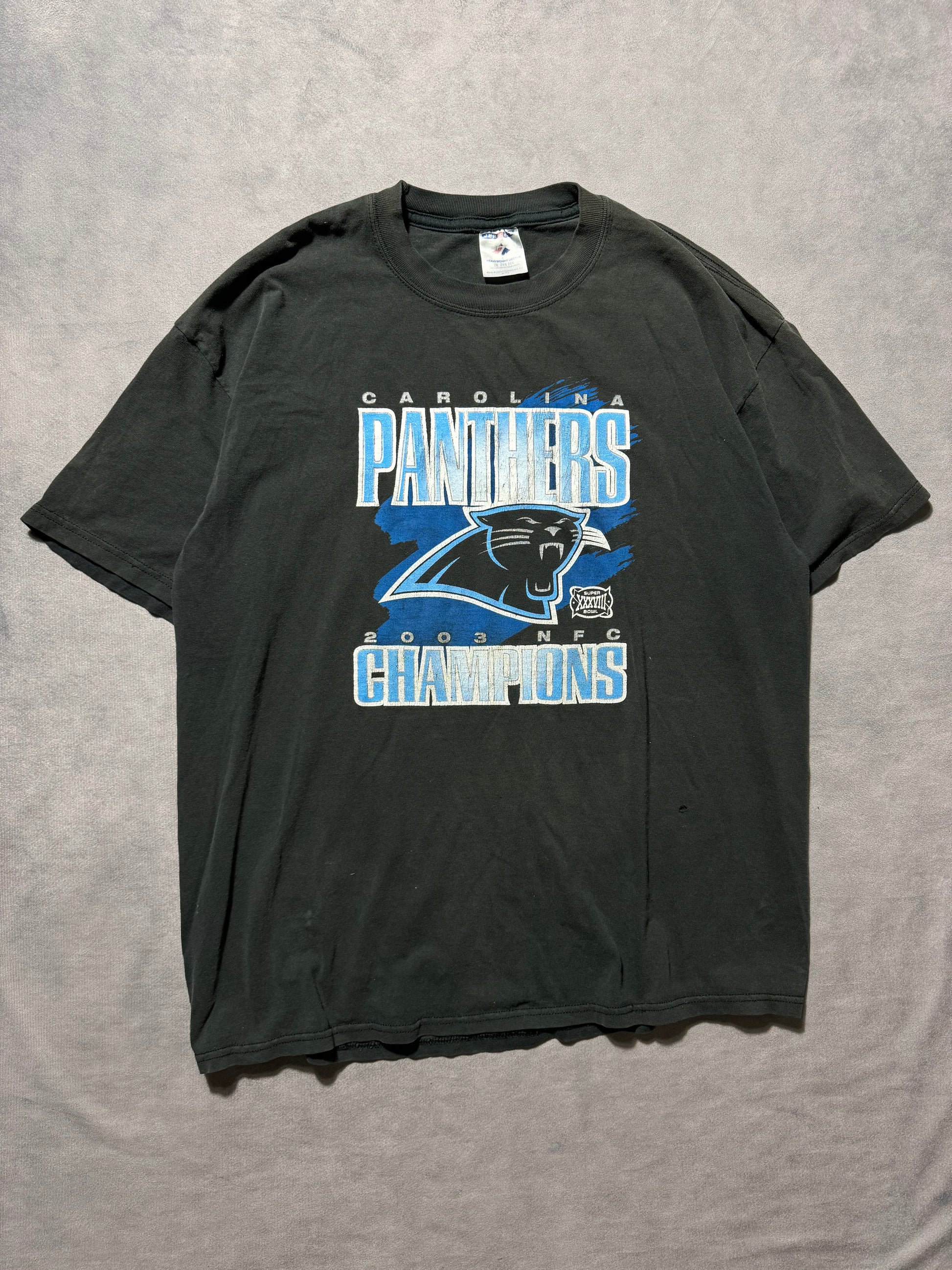 2003 Carolina Panthers Vintage Faded Black Distressed NFC Champions Super Bowl XXXVIII Tee (XXL)