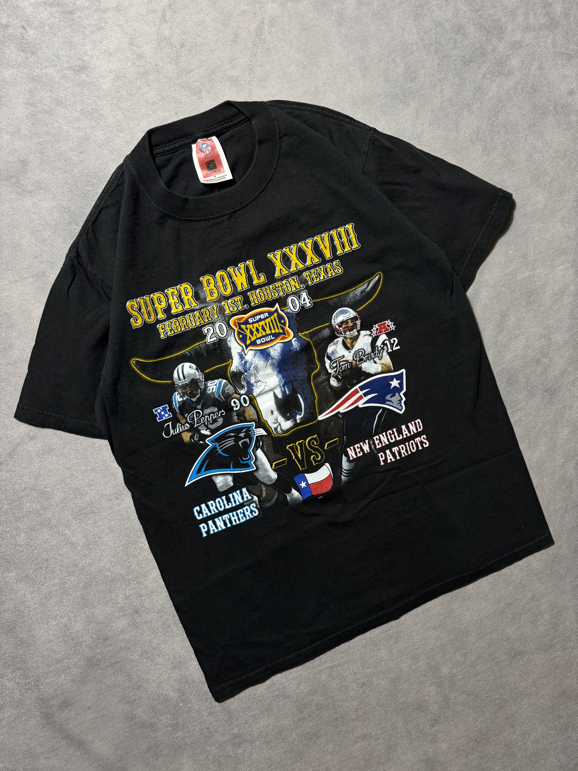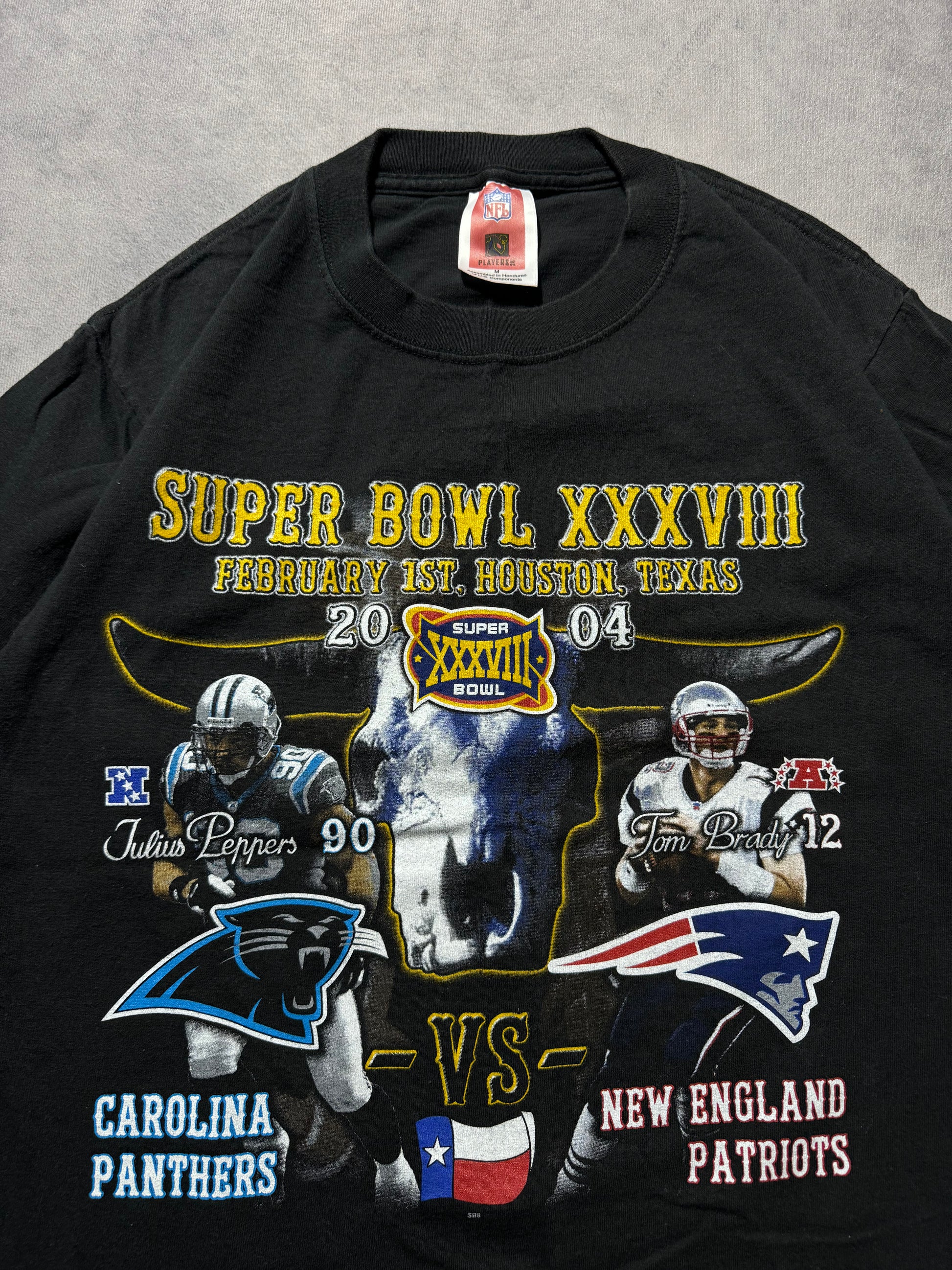 2004 Carolina Panthers vs. New England Patriots Super Bowl XXXVIII Julius Peppers Tom Brady Match Up NFL Tee (Medium)