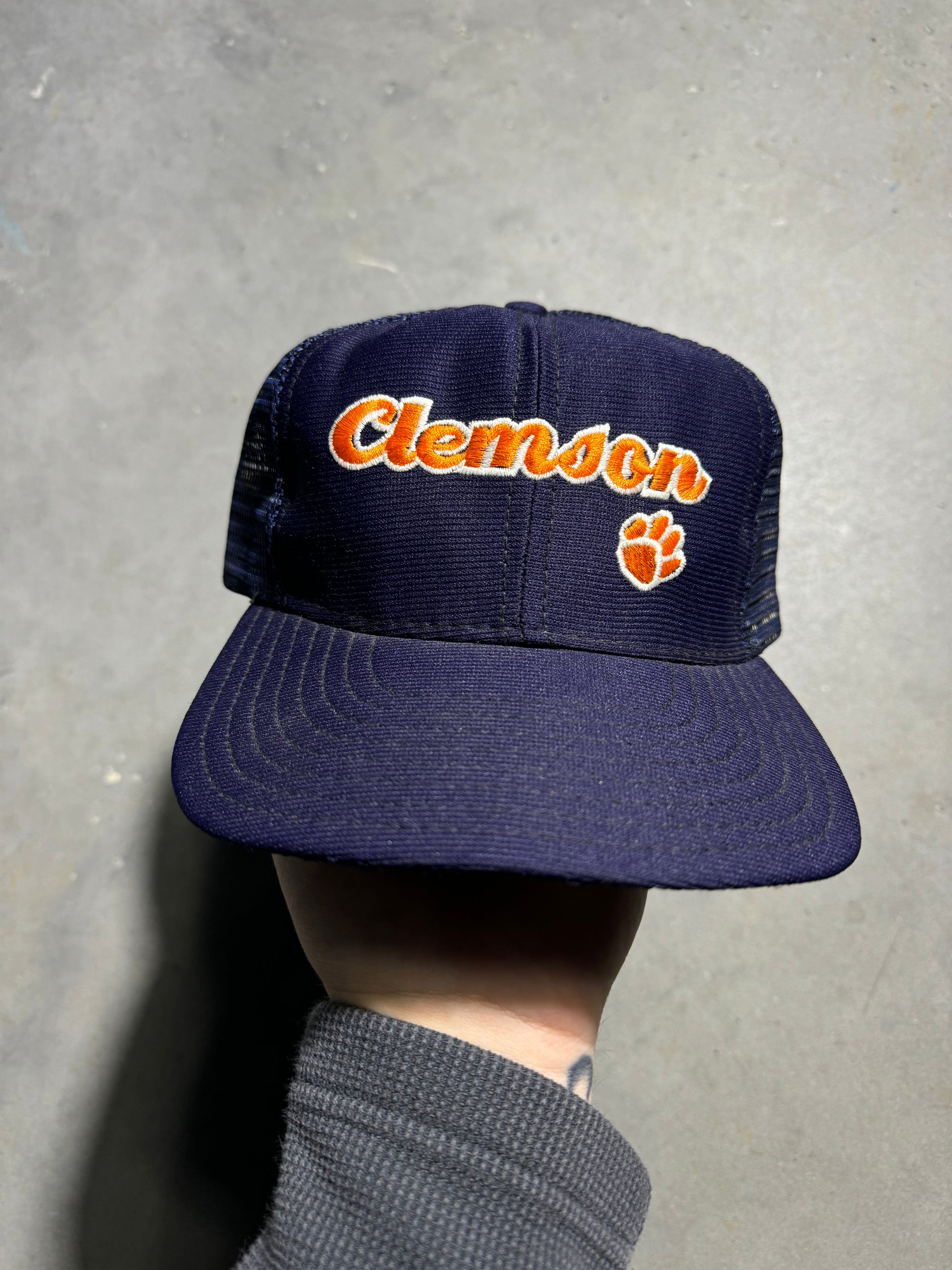 80’s Clemson Tigers Vintage Navy Blue College Trucker Snapback Hat (OSFA)