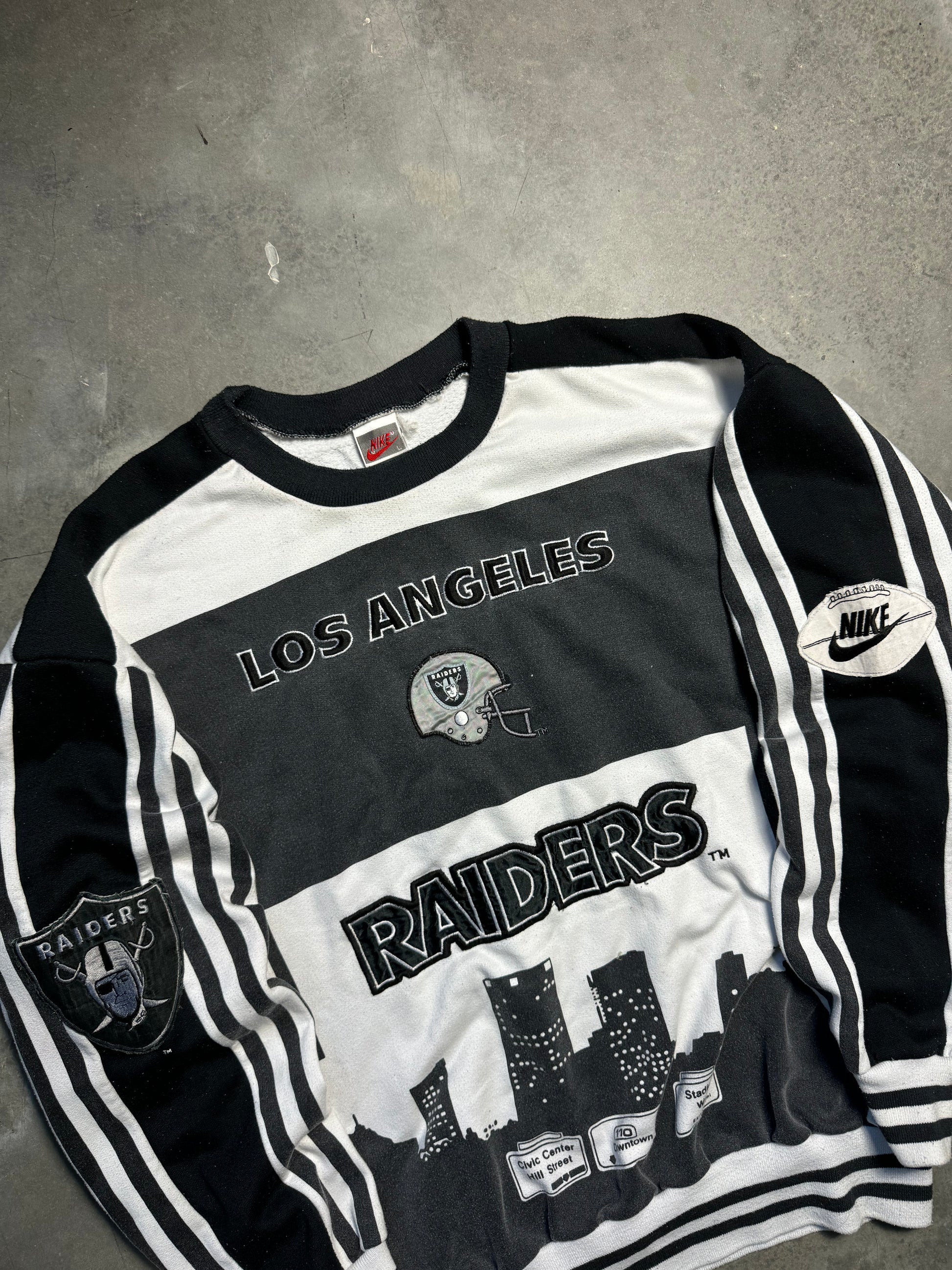 80’s Los Angeles Raiders Vintage Nike City Skyline Heavyweight Embroidered NFL NWA Style Crewneck (Large)