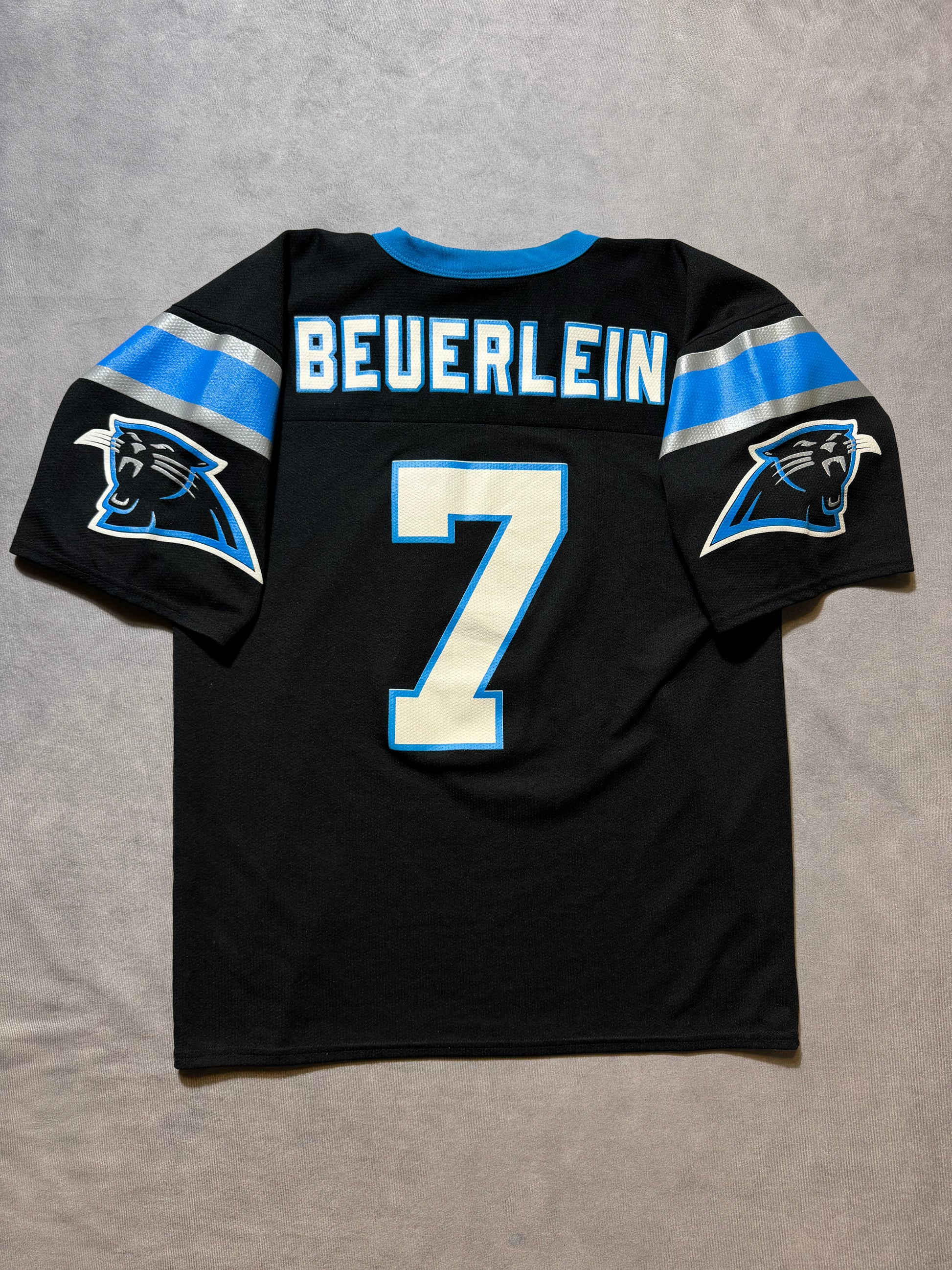 90’s Carolina Panthers Steve Beuerlein Vintage Black Logo Athletic NFL Jersey (Medium)