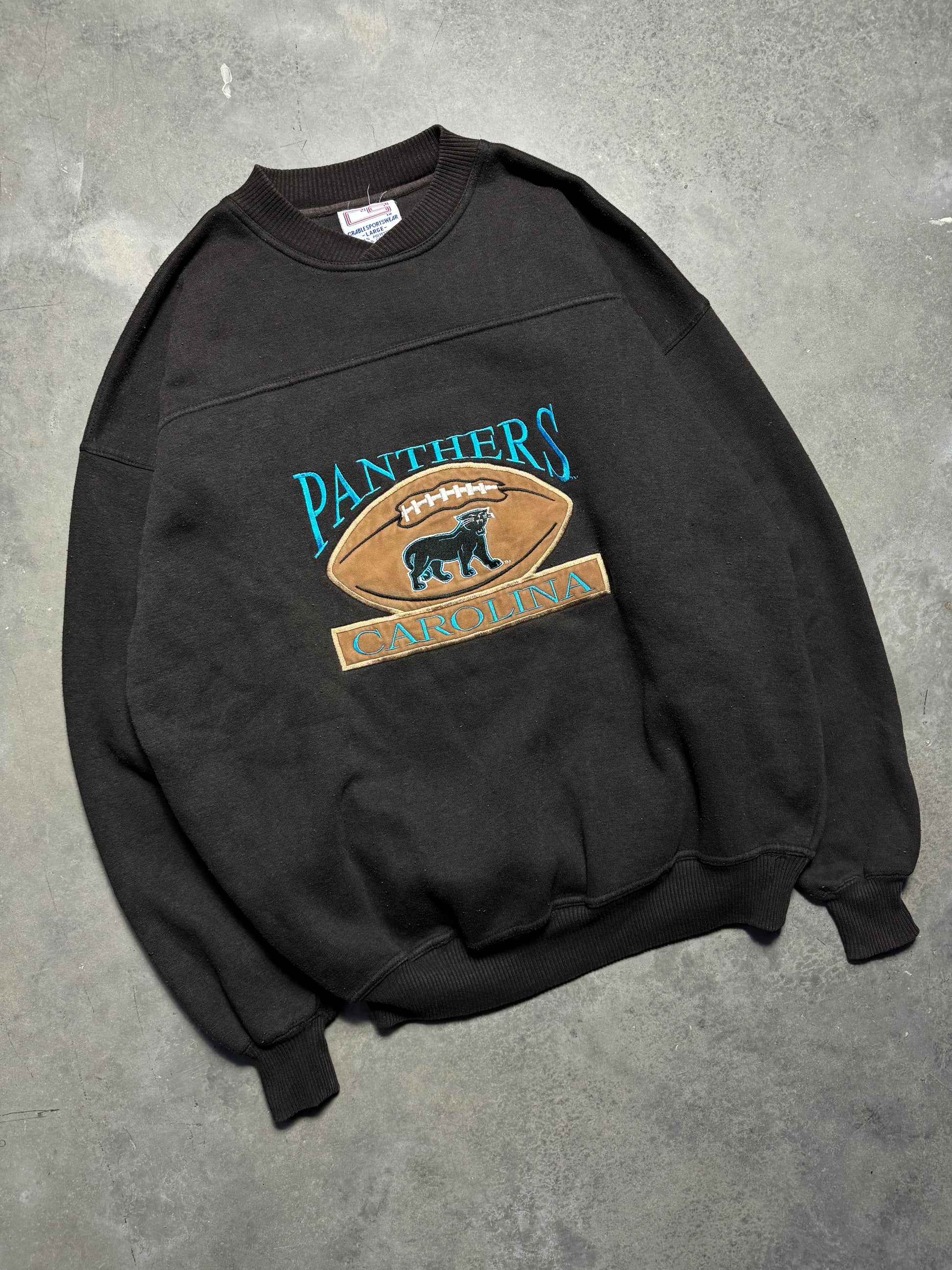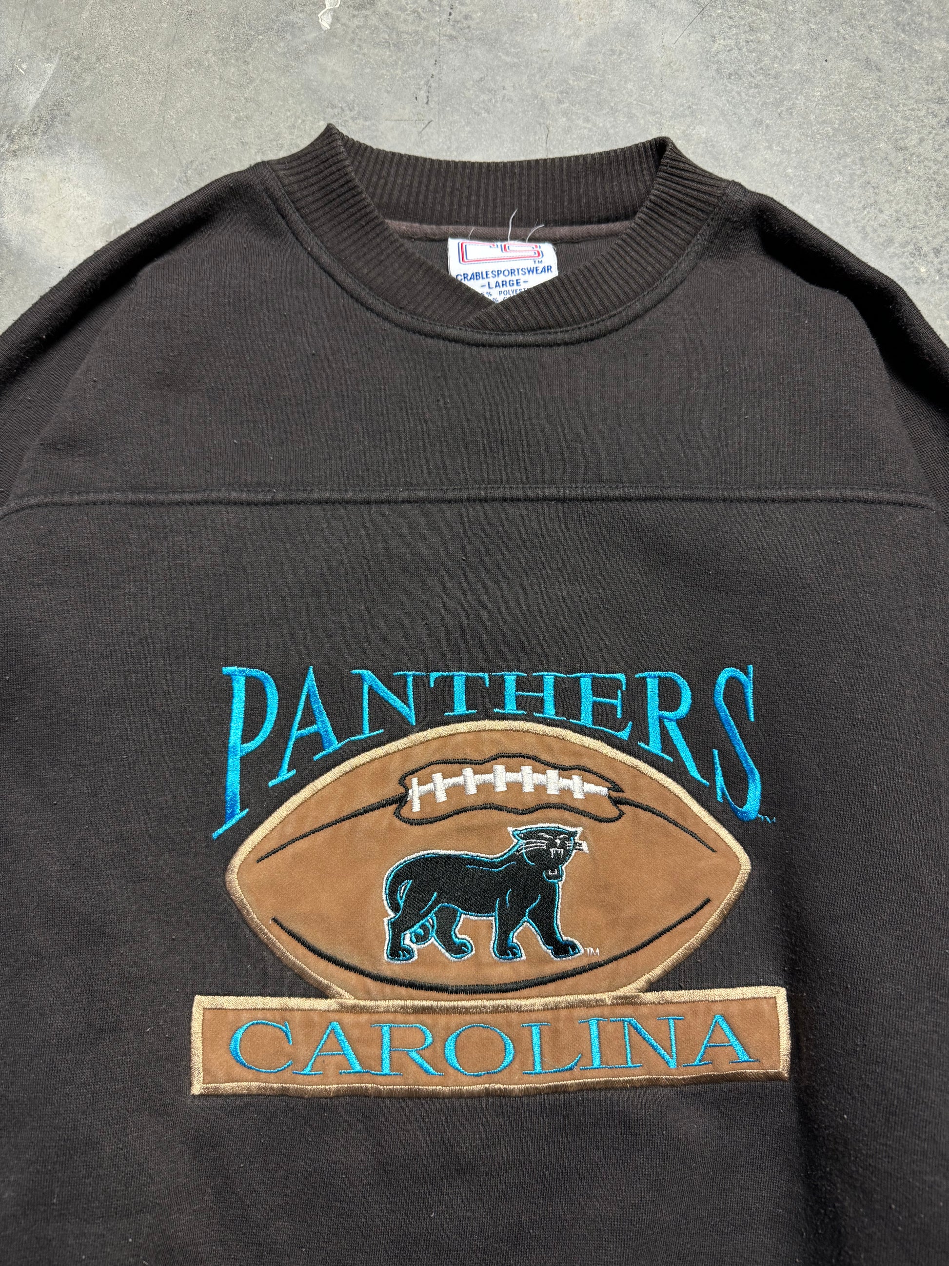 90’s Carolina Panthers Vintage Black Felt Football Alternate Full Cat Logo Heavyweight NFL Crewneck (Large)