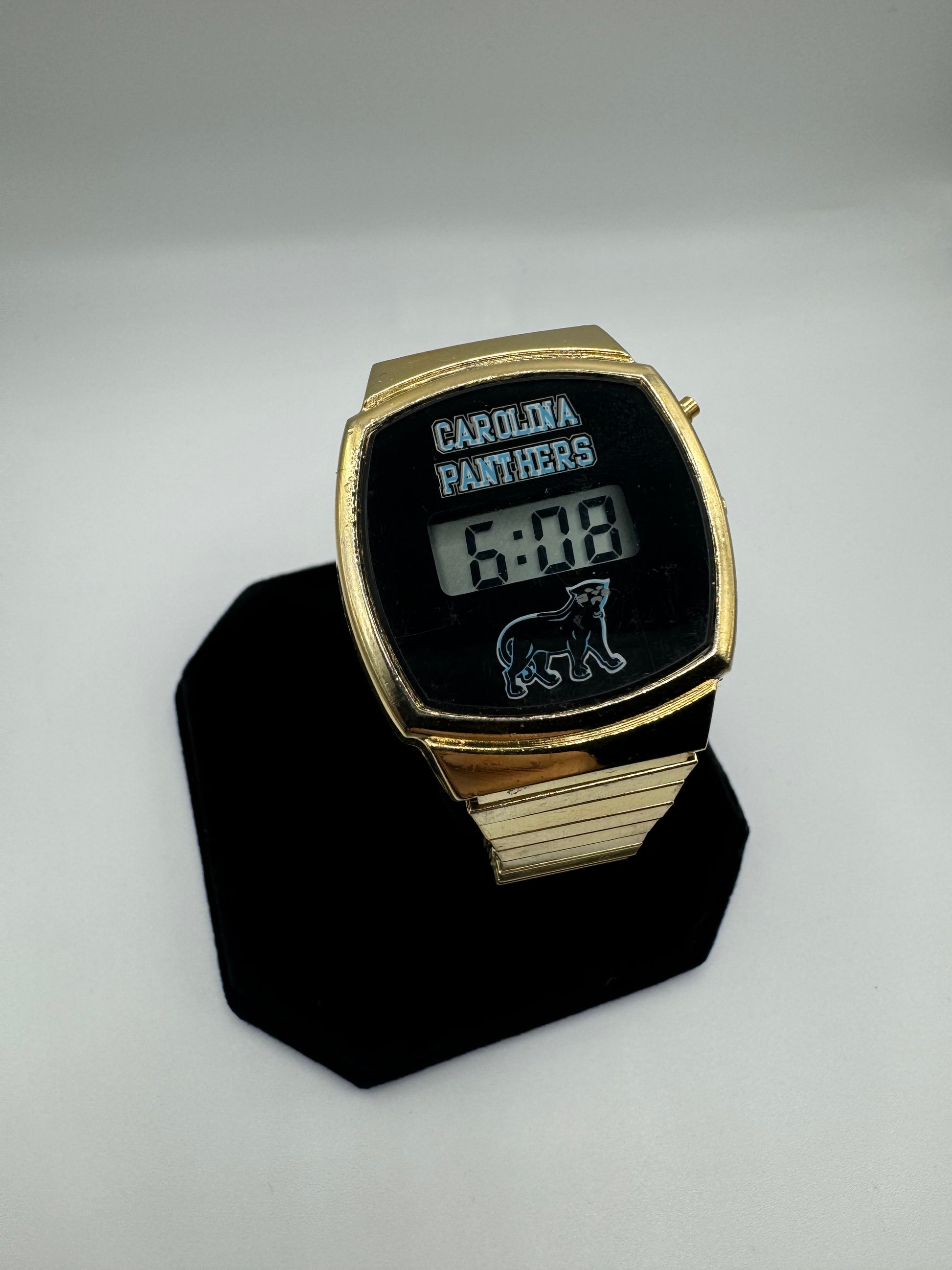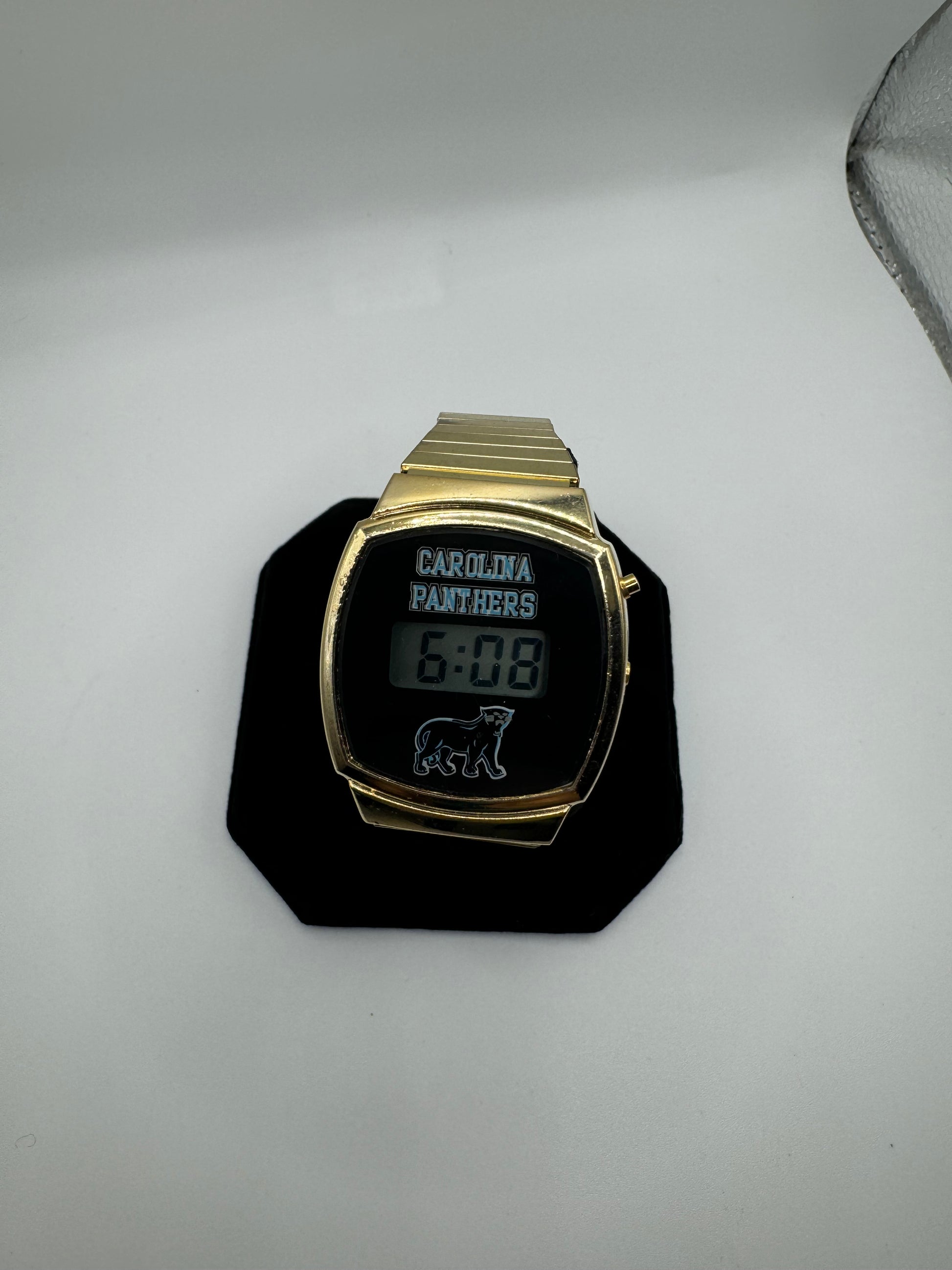 90’s Carolina Panthers Vintage Gold Tone Alternate Full Cat Logo NFL Digital Watch (OSFA)