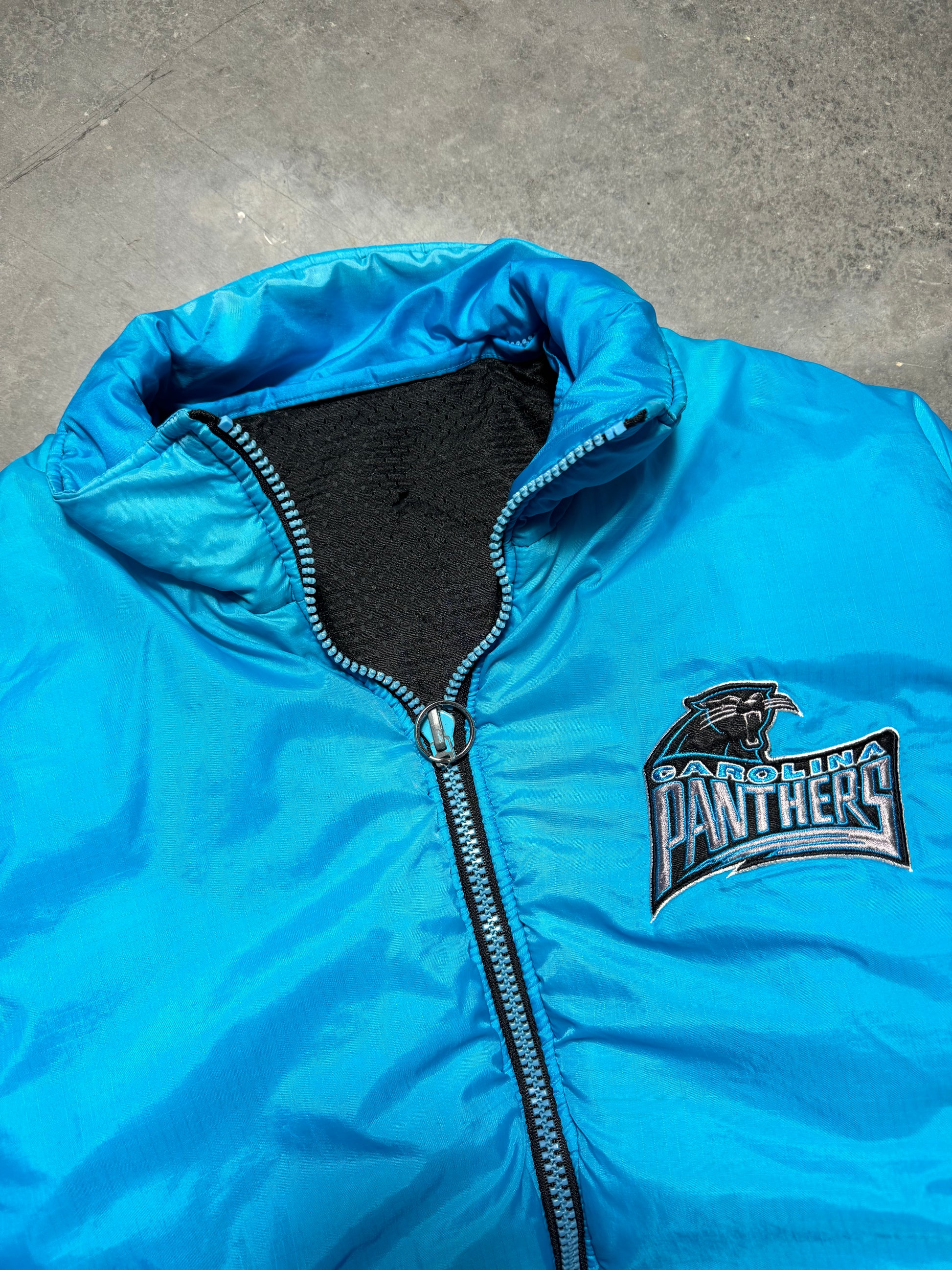 90’s Carolina Panthers Vintage Reversible Pro Player Repeat Logo NFL Puffer Jacket (Large)