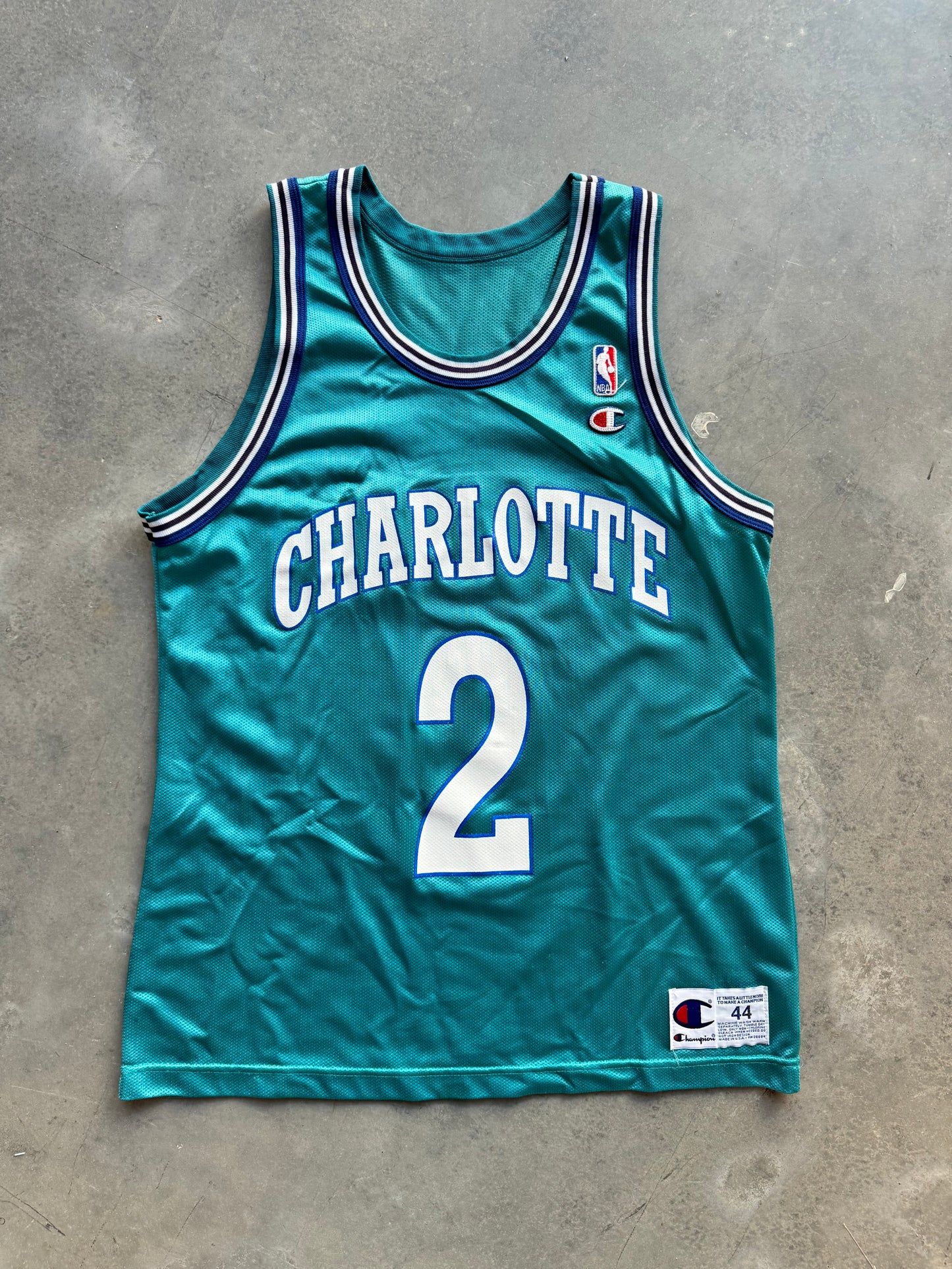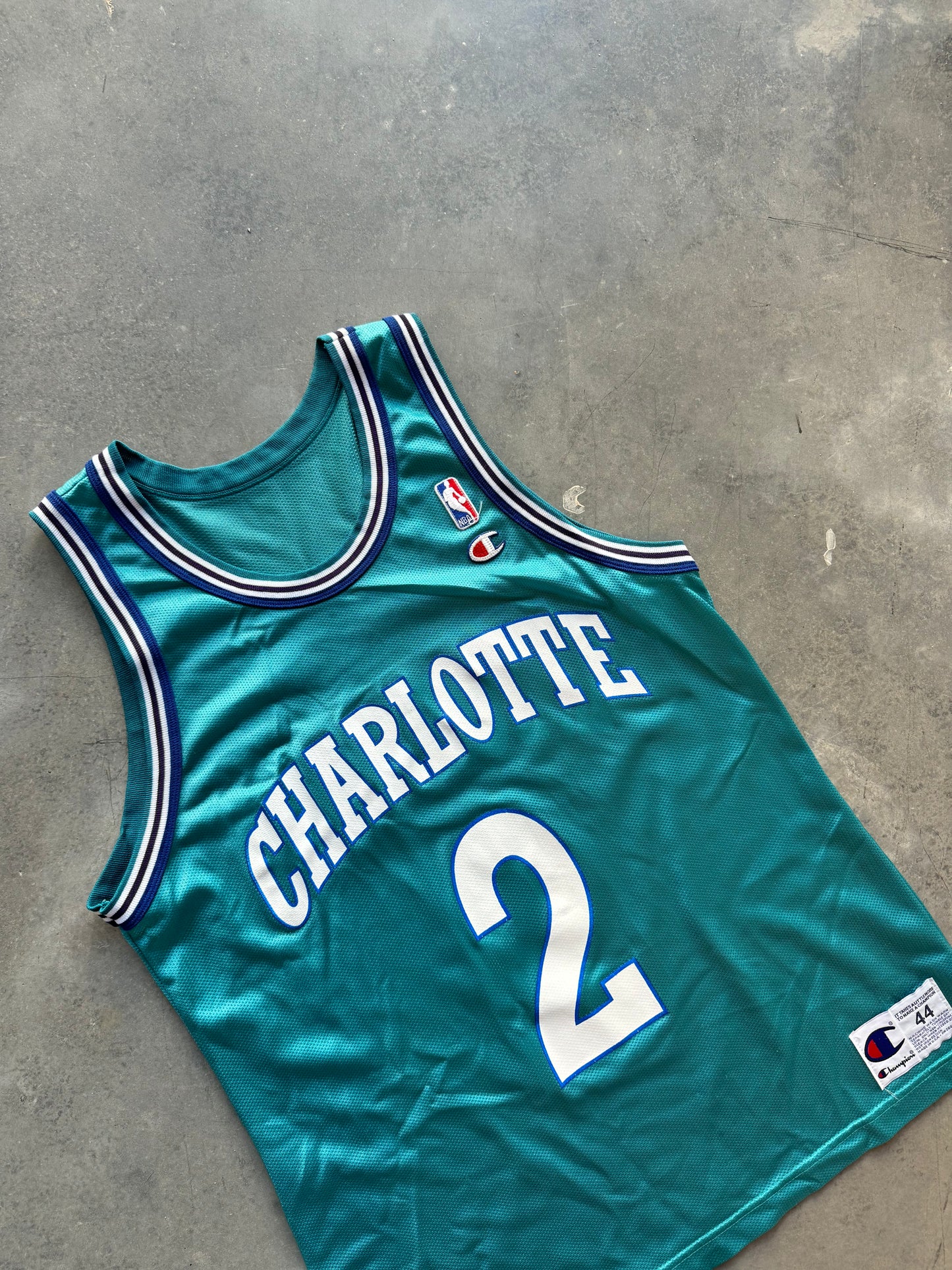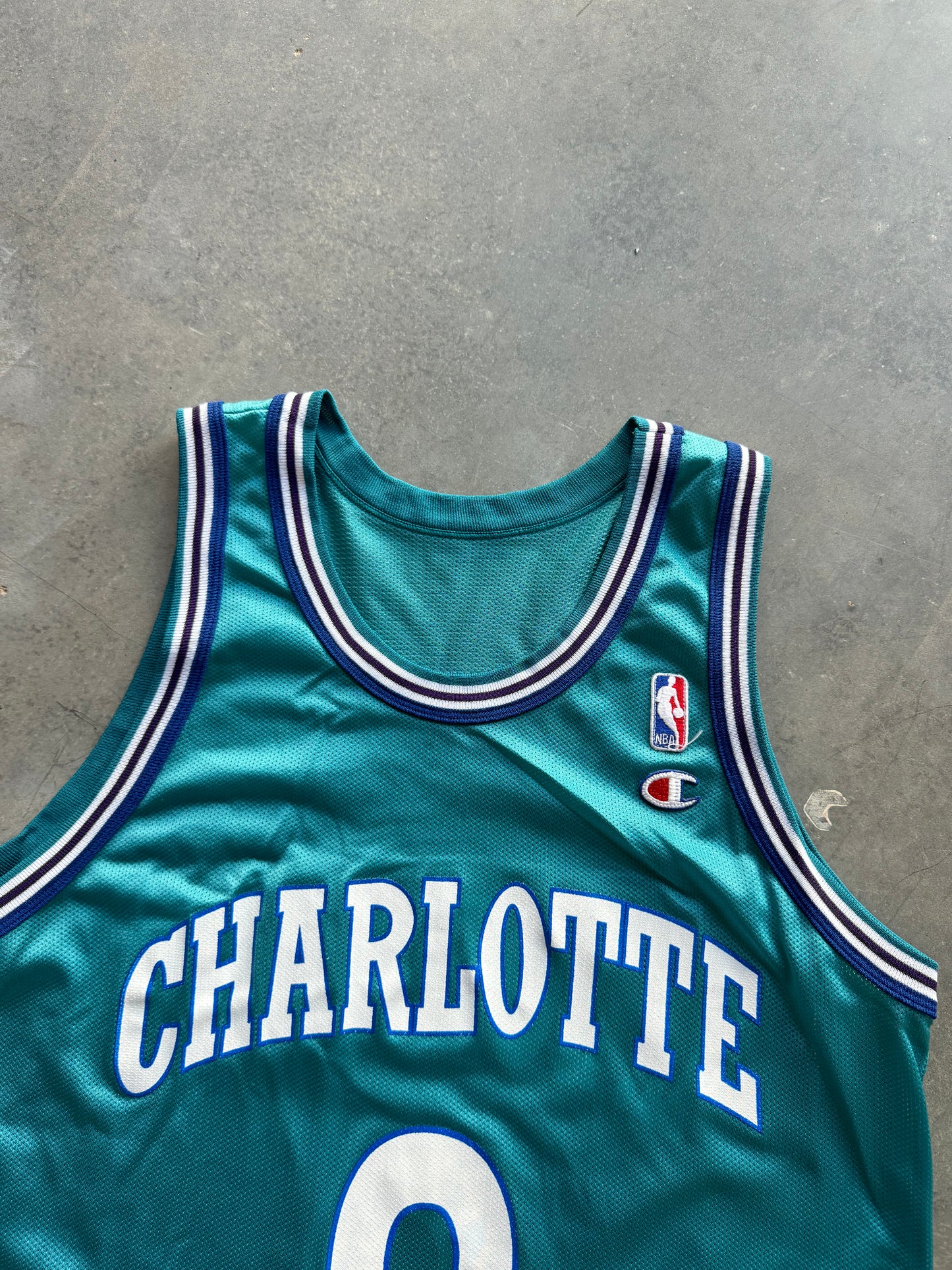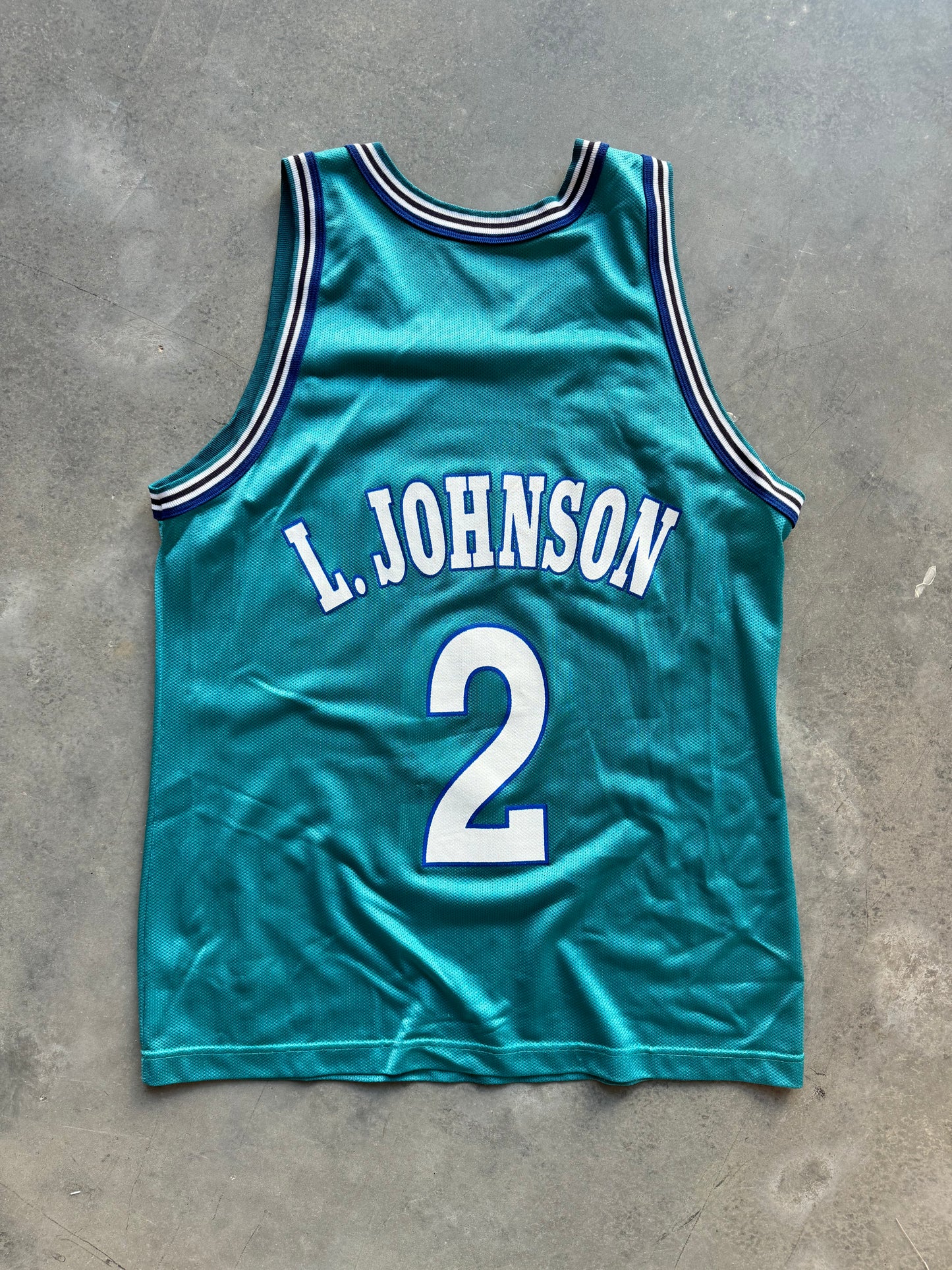 90’s Charlotte Hornets Larry Johnson Vintage Teal Champion NBA Jersey (44/Large)