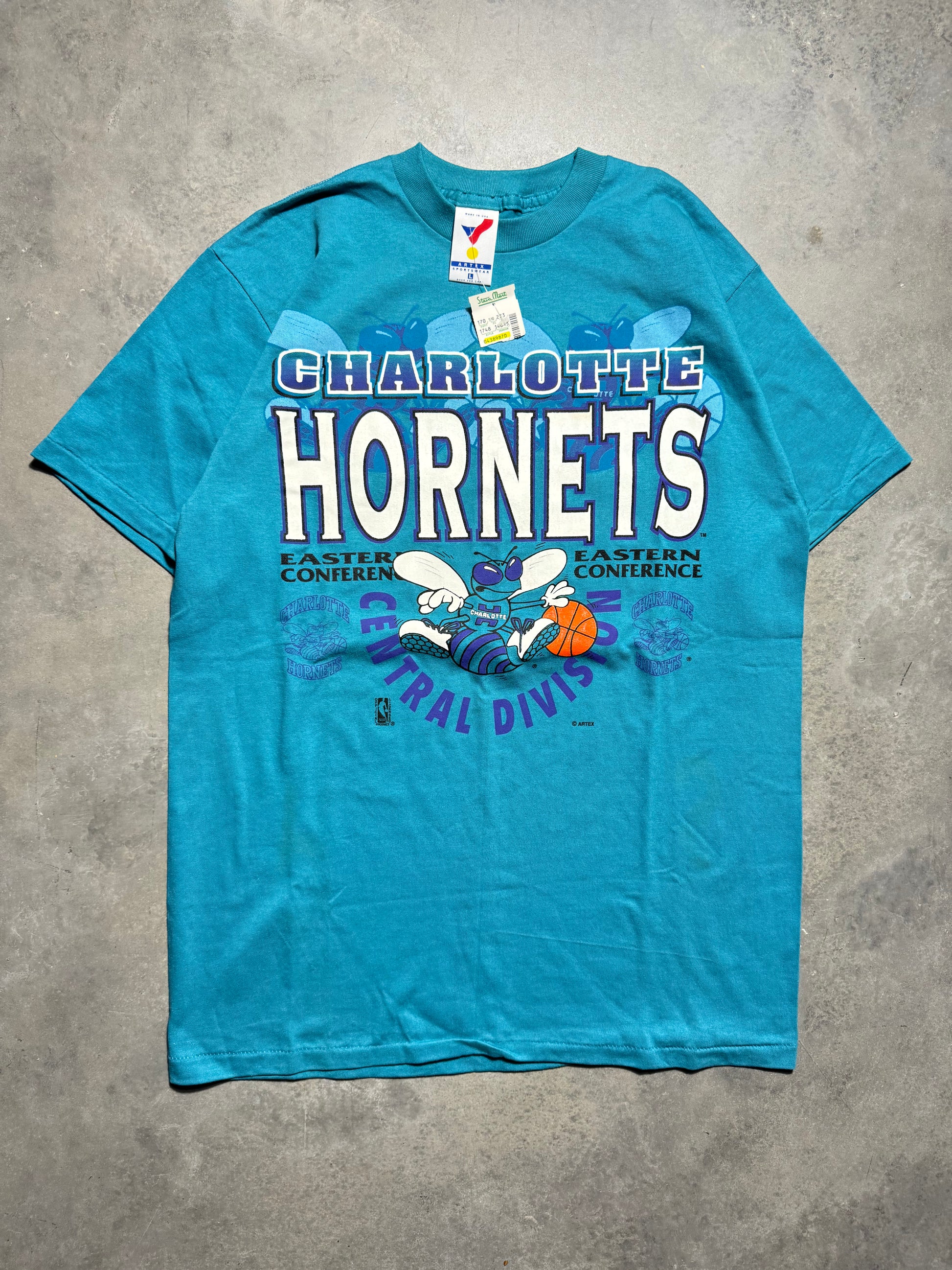90’s Charlotte Hornets Vintage Teal Artex Sportswear NBA Graphic Tee - Deadstock (Large)