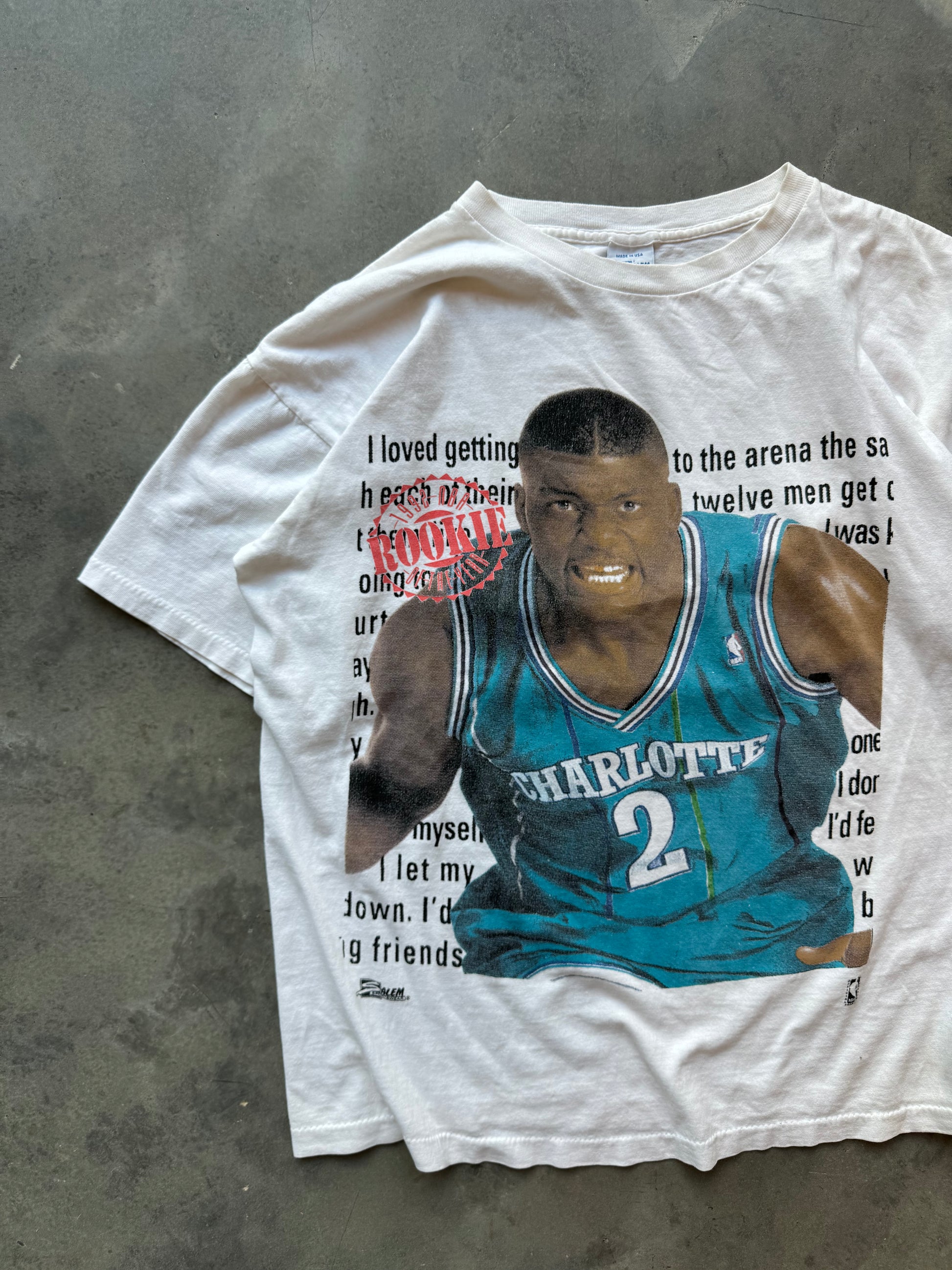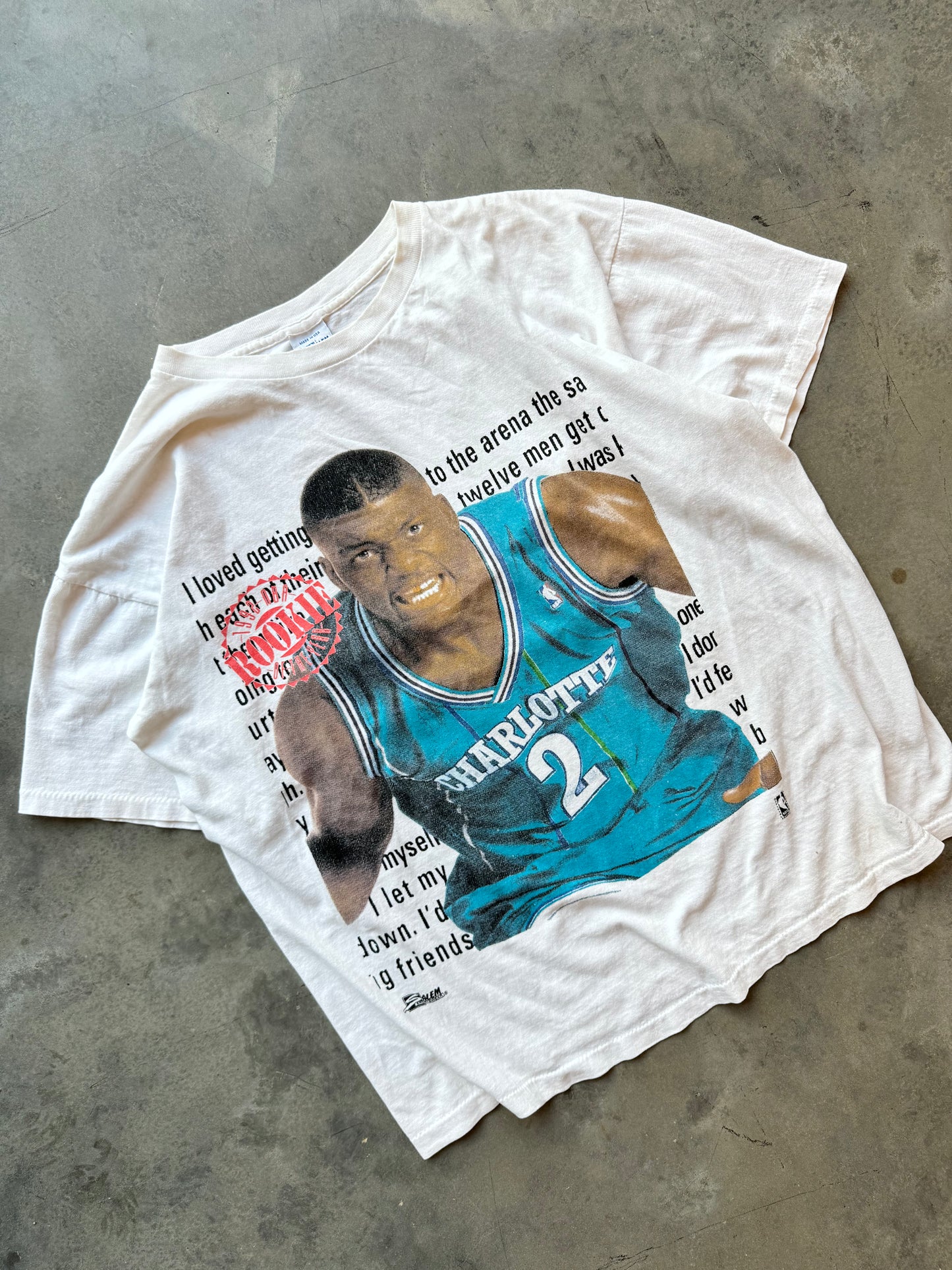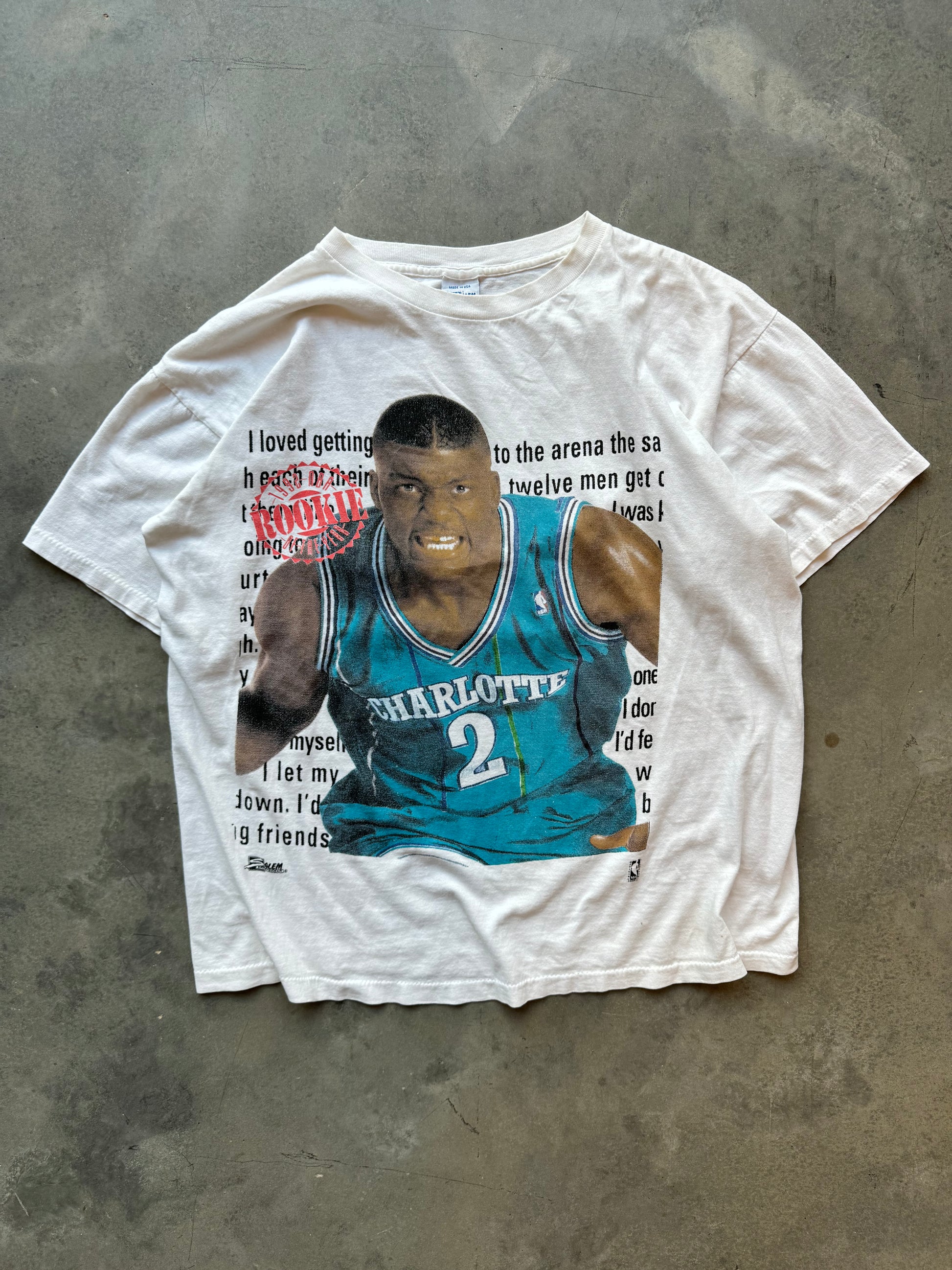 90’s Converse x Larry Johnson Charlotte Hornets Grandmama Vintage Salem Sportswear NBA Rookie of the Year Big Face Tee (XL)