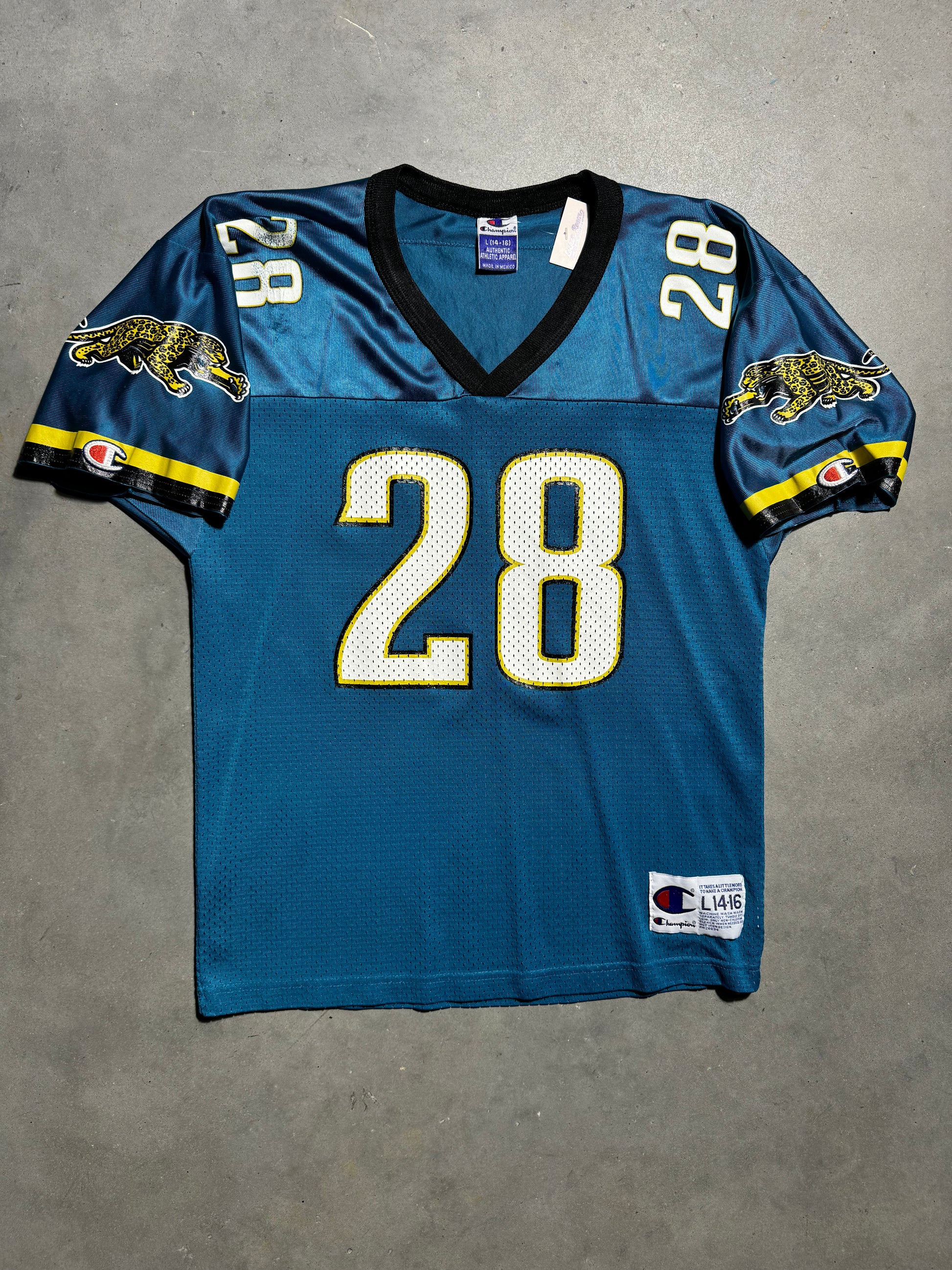 90’s Jacksonville Jaguars Fred Taylor Vintage Teal Prowler Logo Champion NFL Jersey (Youth Large)