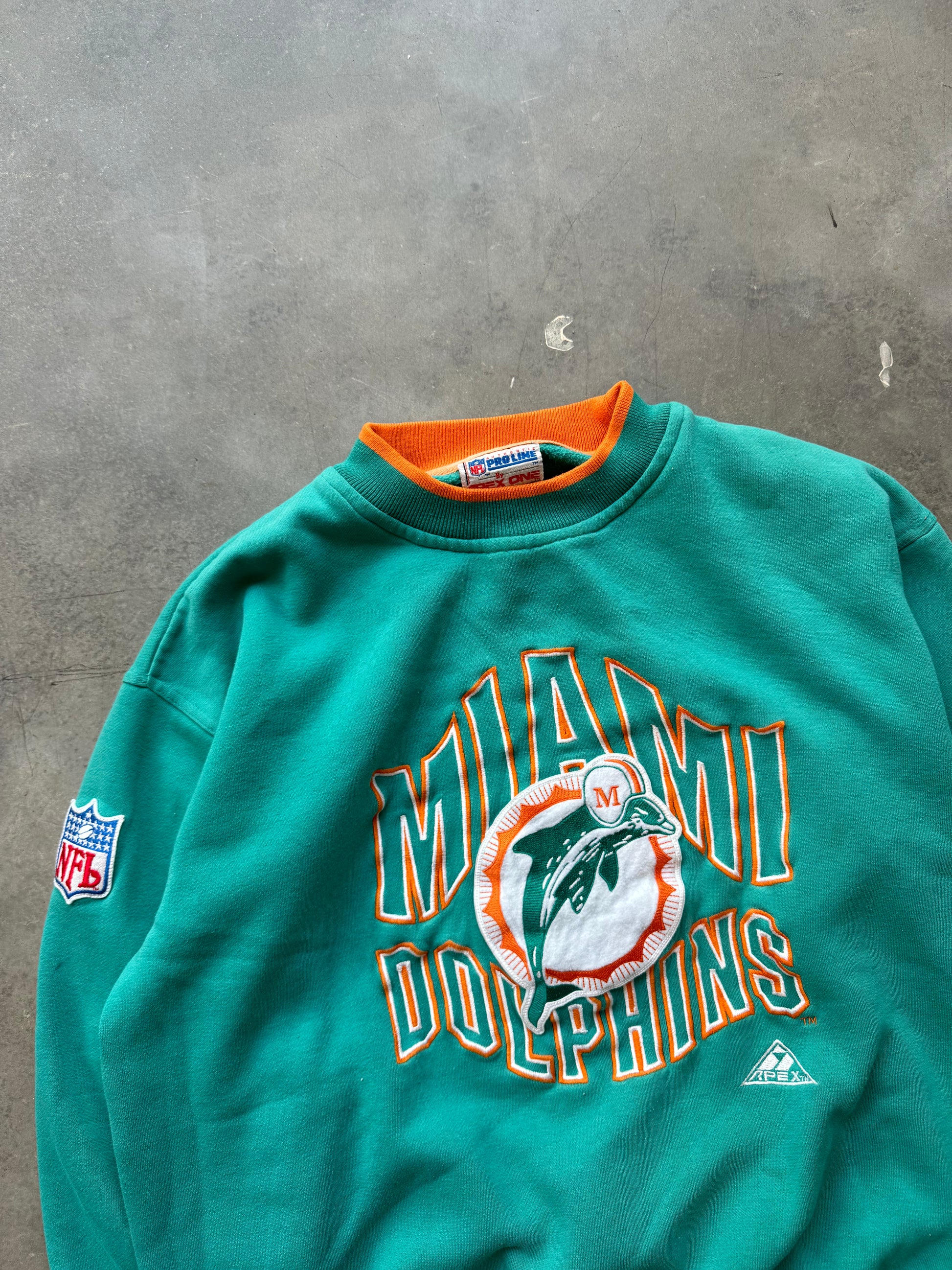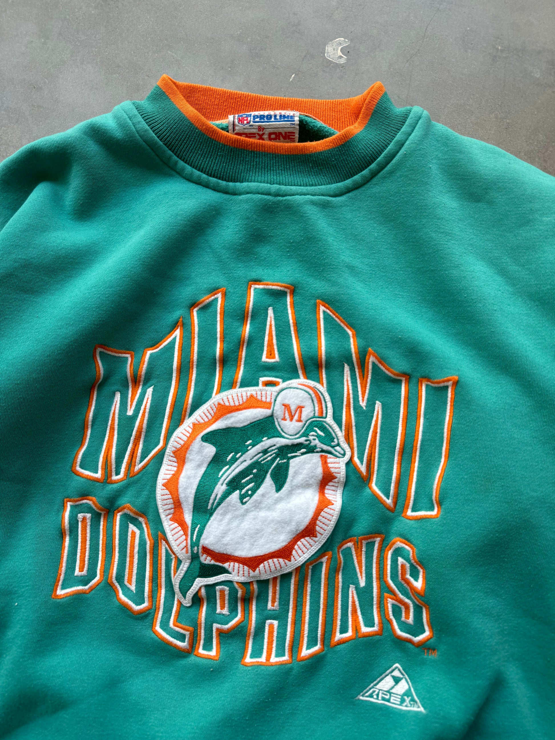 90’s Miami Dolphins Vintage Teal Heabyweight Apex One Heavyweight Embroidered NFL Crewneck (Medium)